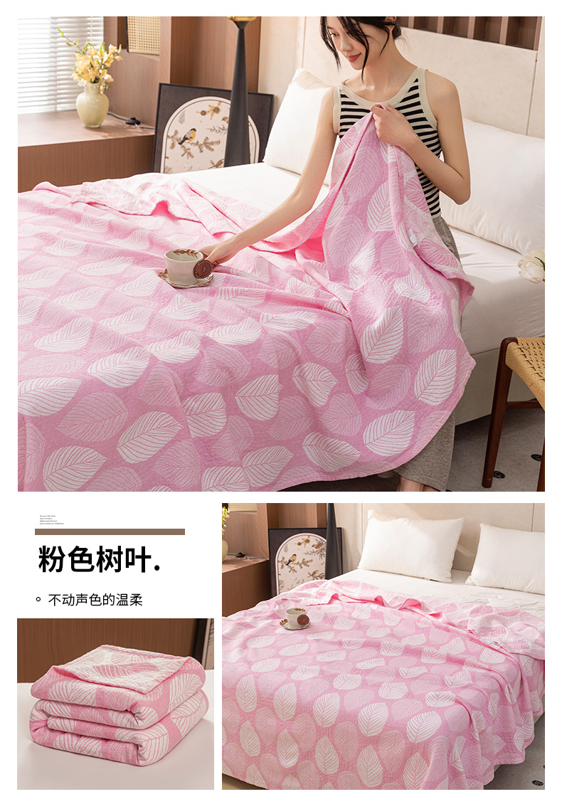 商品名称:乐家毛巾被 2025春夏新款三层棉全棉纯棉毛巾被 粉色树叶