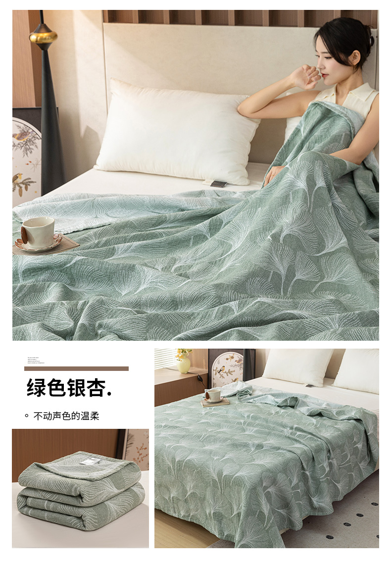 商品名称:乐家毛巾被 2025春夏新款三层棉全棉纯棉毛巾被 绿色银杏