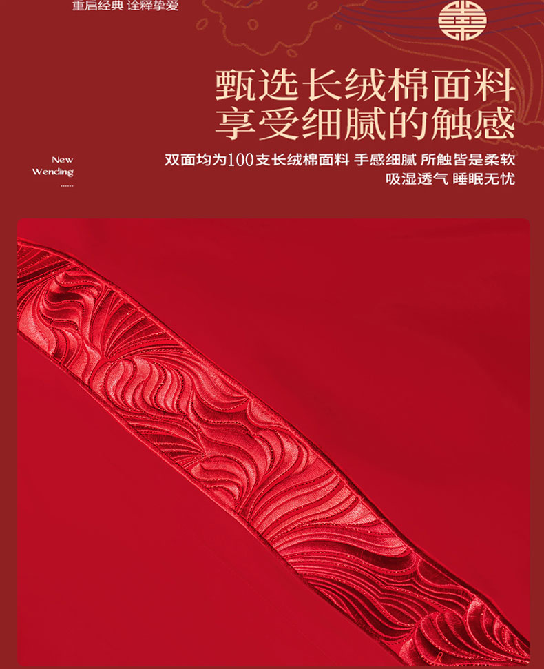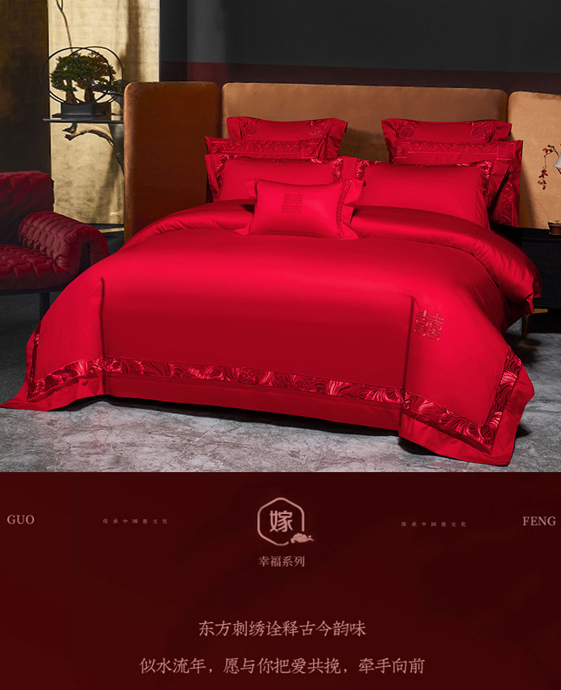 当前位置: 91家纺网 > 商品网购 > 床品套件 > 四件套 > 婚庆四件套 > 蒂爵 2025新款婚庆长绒棉时尚小红书爆款刺绣婚庆四件套多件套280系列 喜悦