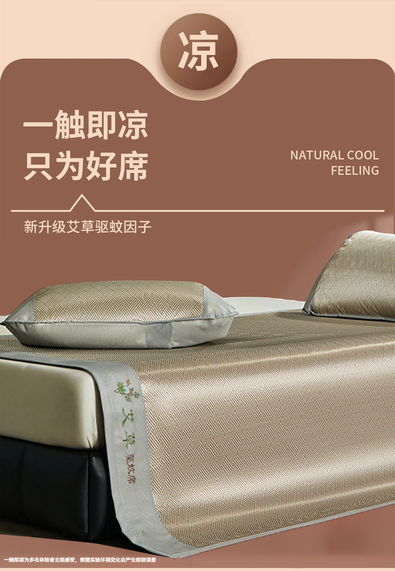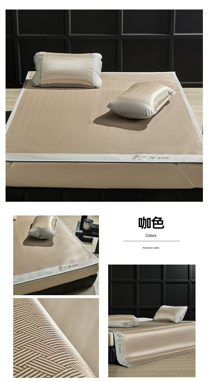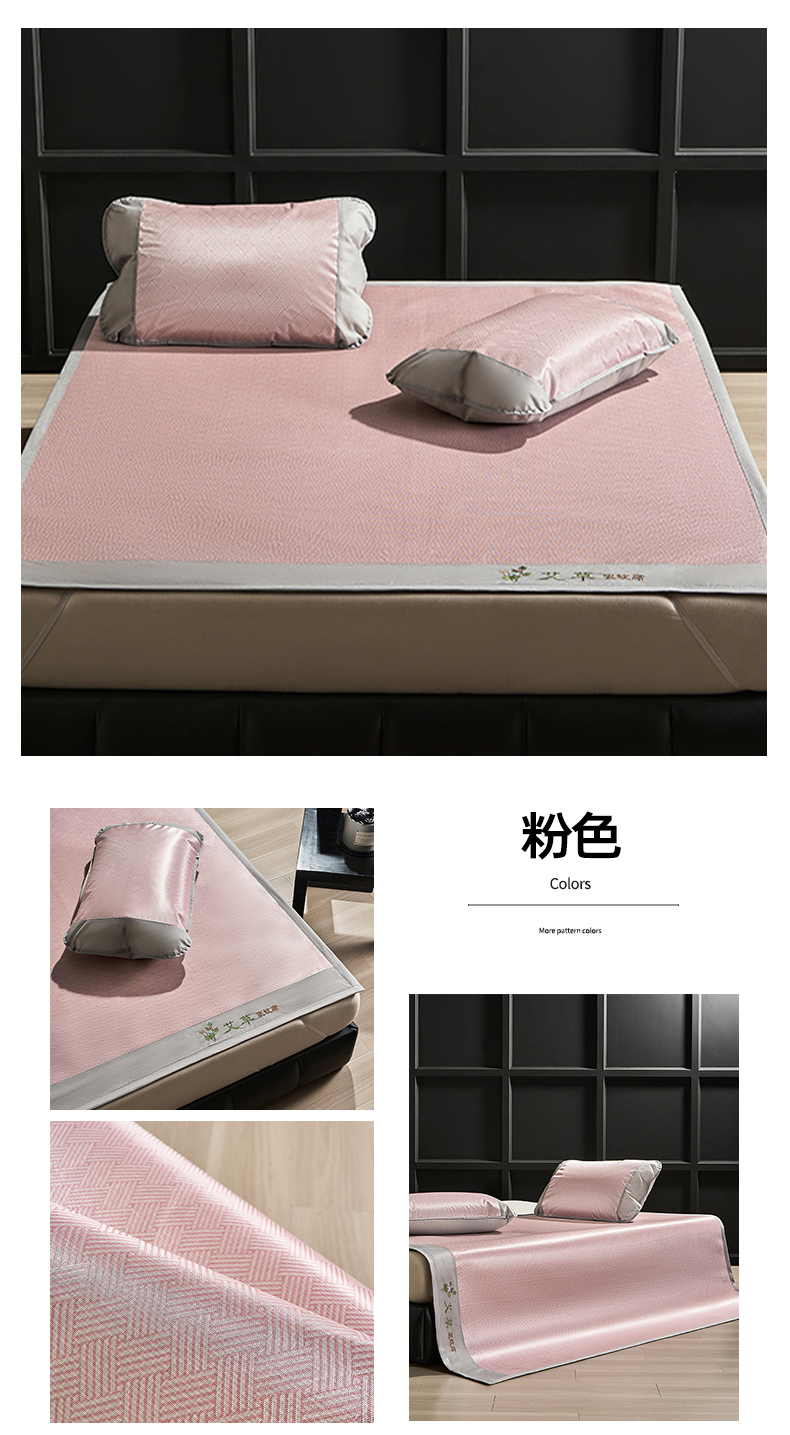 商品名称:梵希良品家纺 2025新款艾草宽边绣花冰藤席冰丝席凉席三件套 蓝色