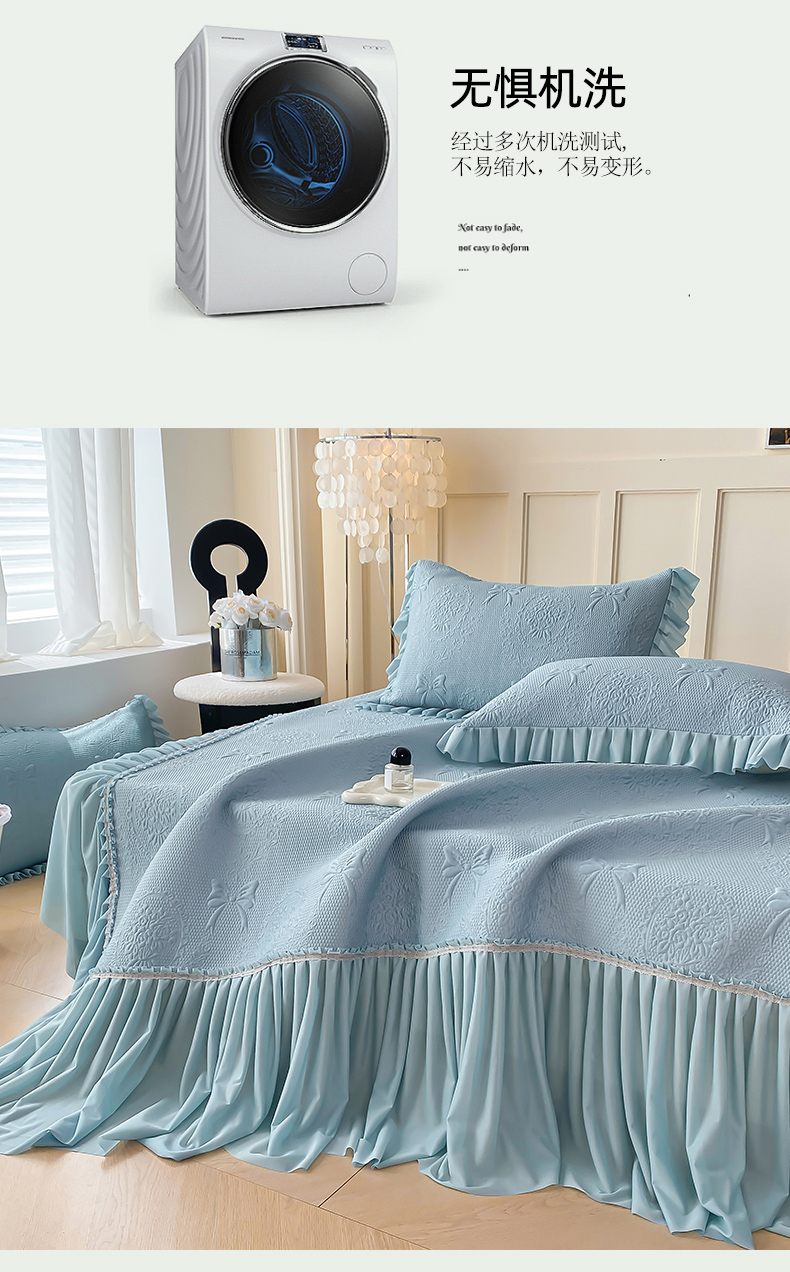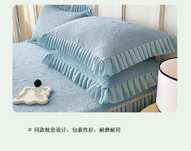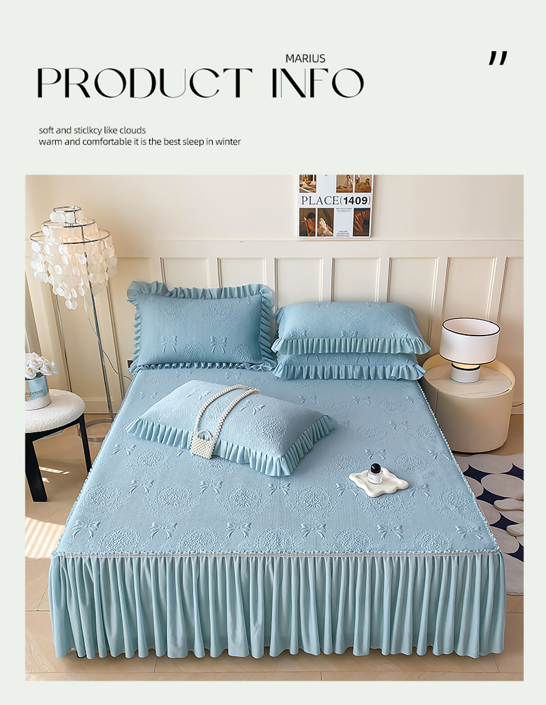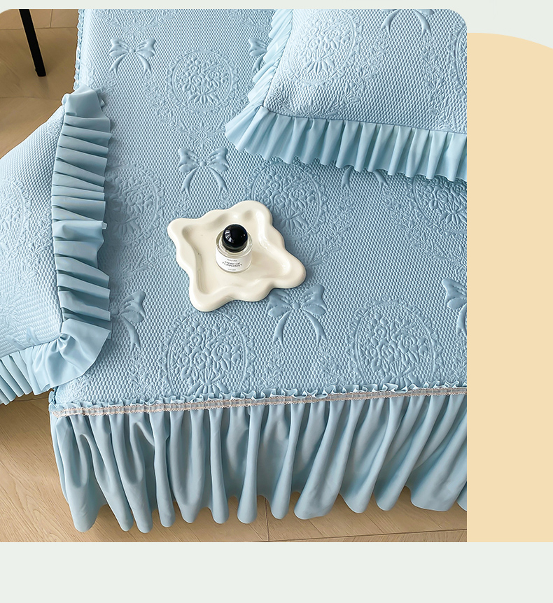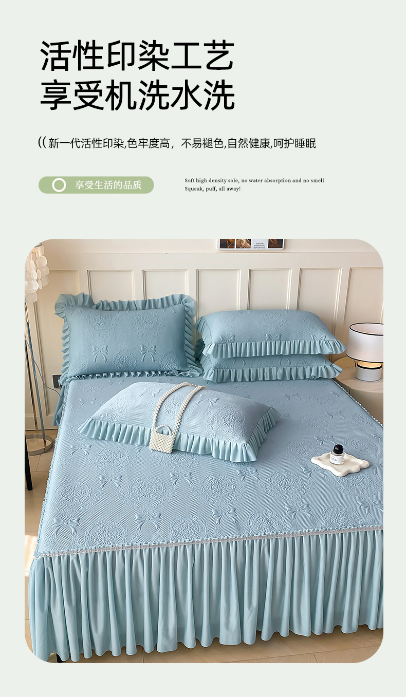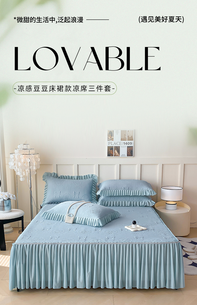 2025新款复合三明治床裙款凉豆豆凉席三件套系列 约定-优雅蓝