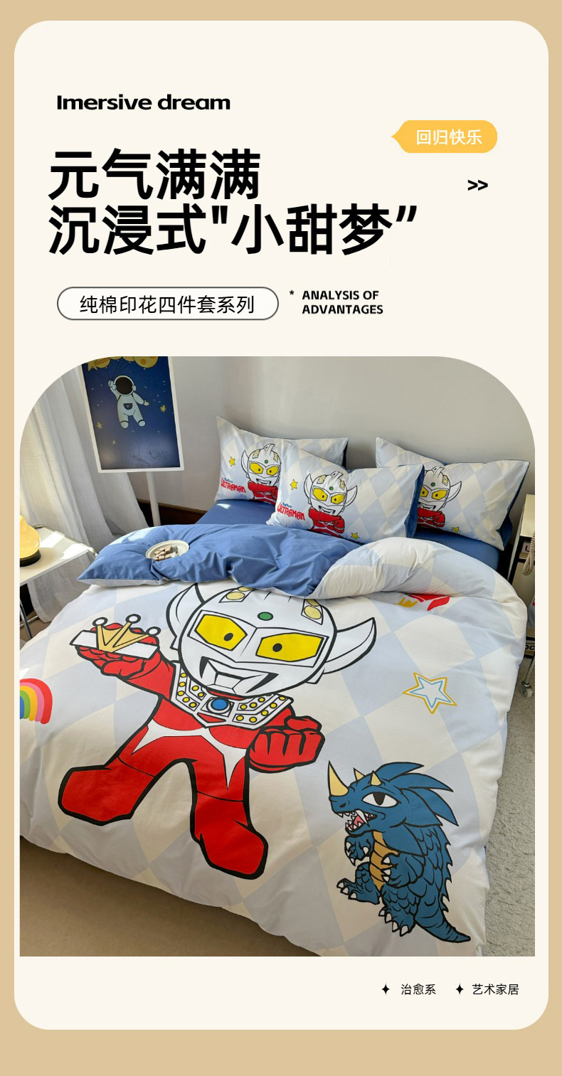 商品名称:(总)金爱家 2025新款纯棉数码印花系列四件套-奥特曼
