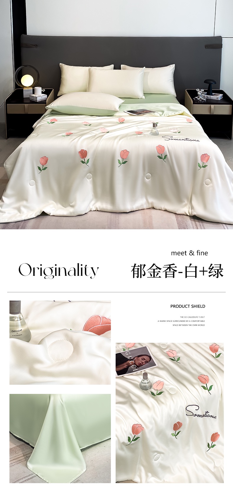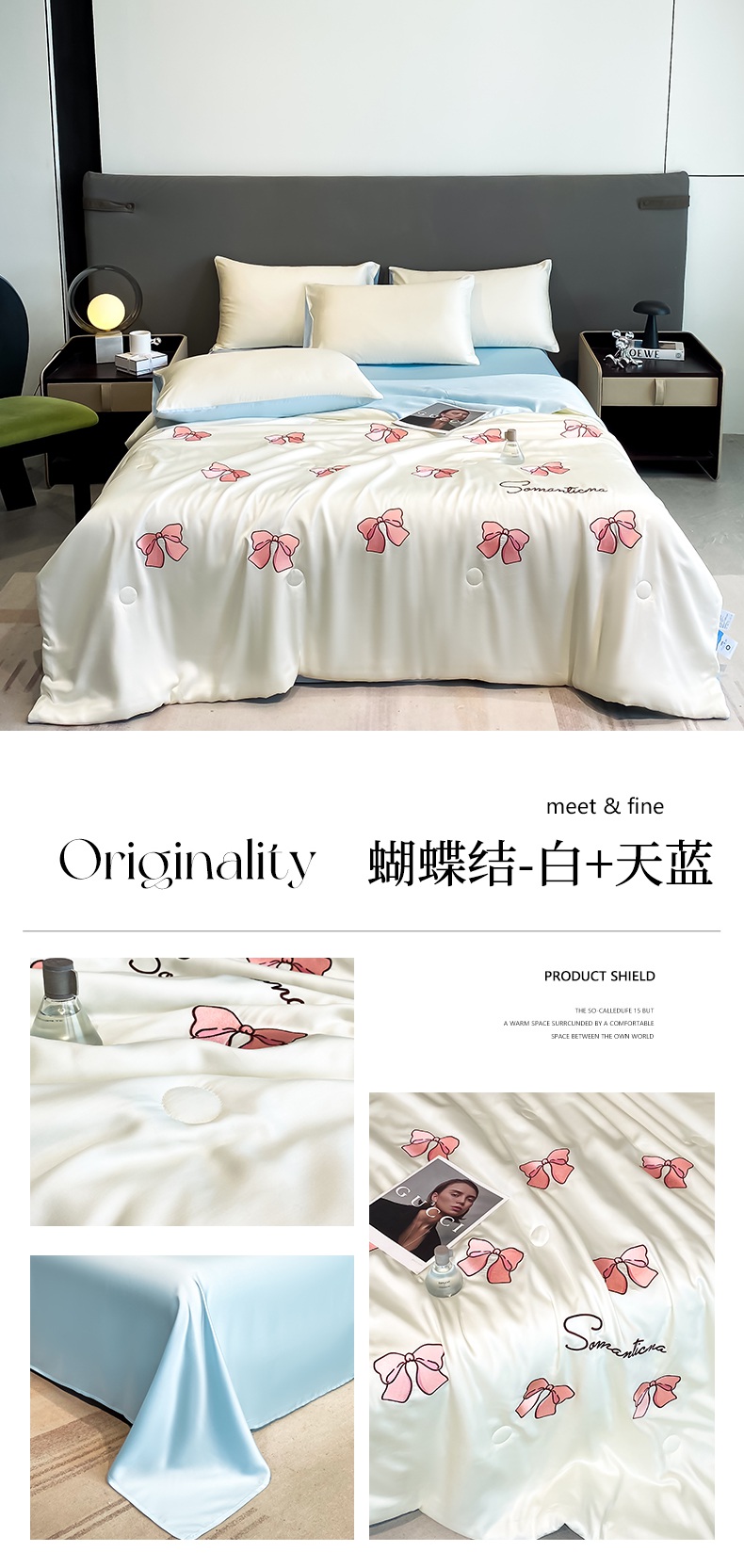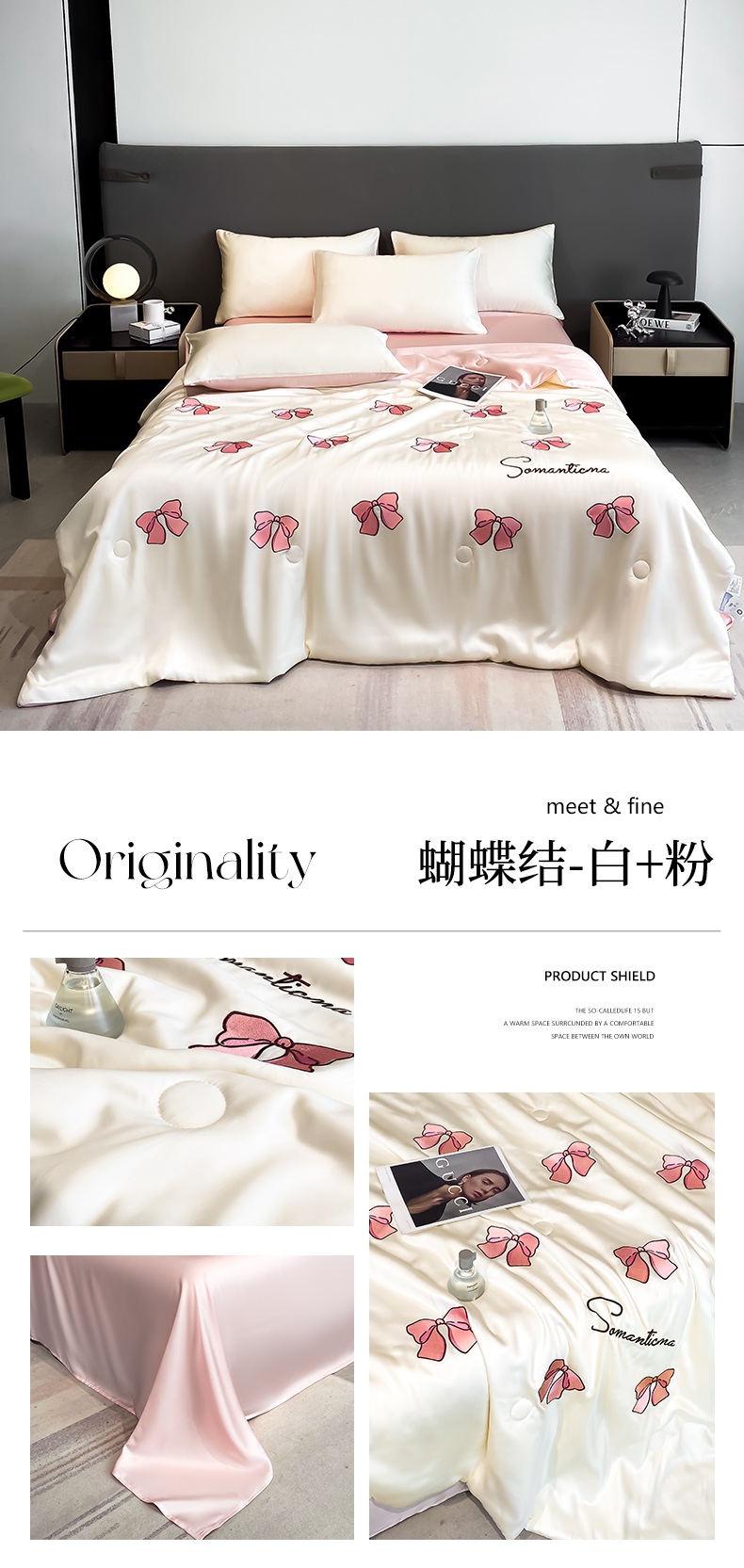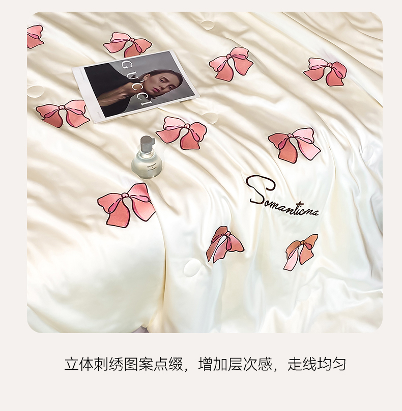 小久久(小九九) 2025新款水洗真丝夏被四件套-满绣系列,蝴蝶结-白+粉,蝴蝶结-白+天蓝,可爱猫-白+奶茶,可爱猫-绿+奶黄,南瓜-白+绿,南瓜-白+奶黄,曲奇熊-奶茶+中灰,曲奇熊-奶黄+绿,幸运草-白+粉,幸运草-白+天蓝,郁金香-白+粉,郁金香-白+绿