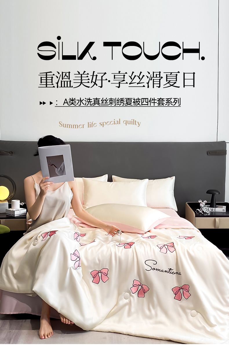 小久久(小九九) 2025新款水洗真丝夏被四件套-满绣系列