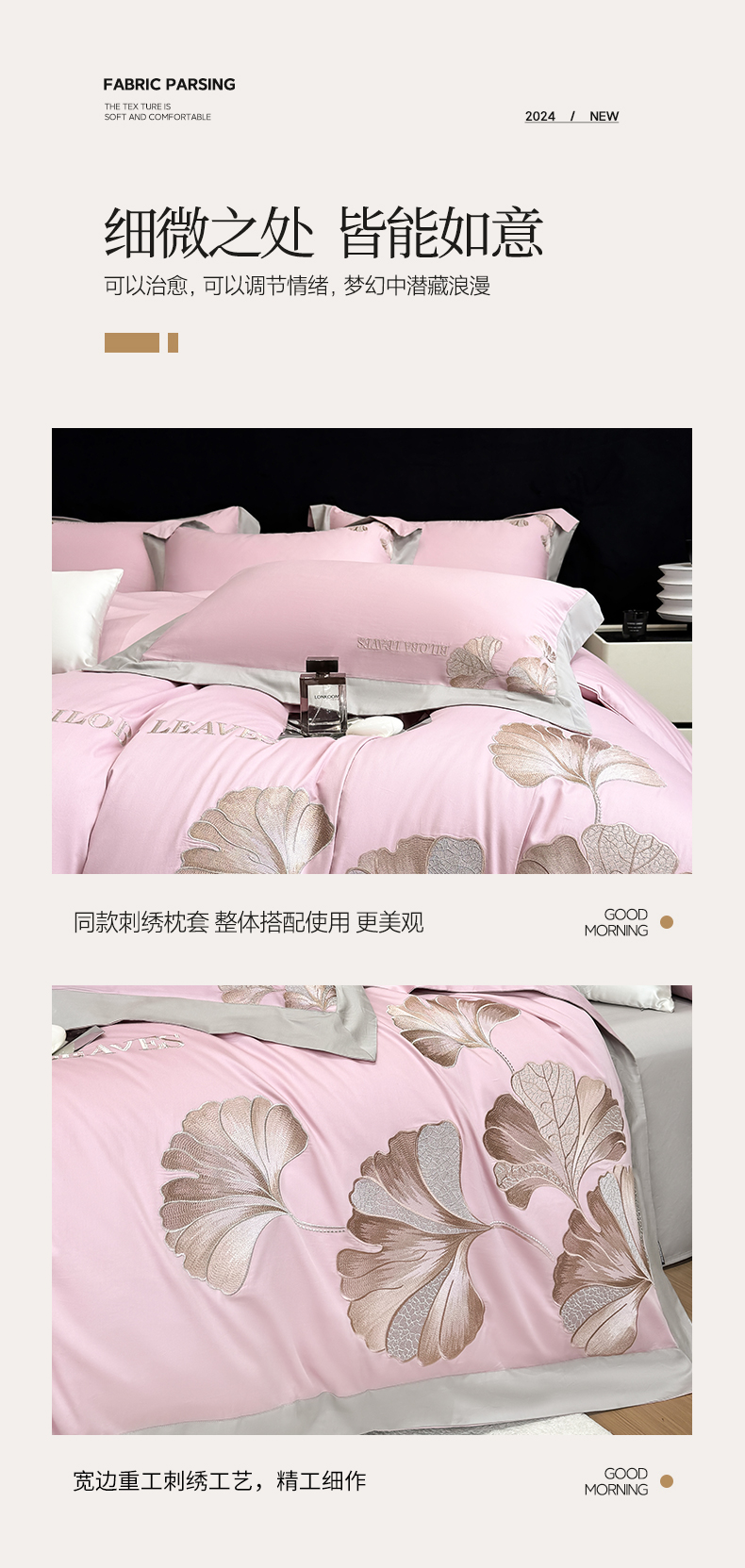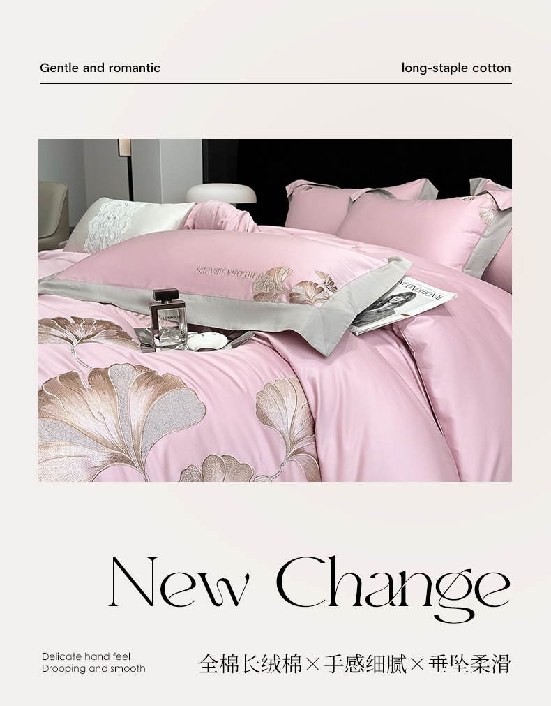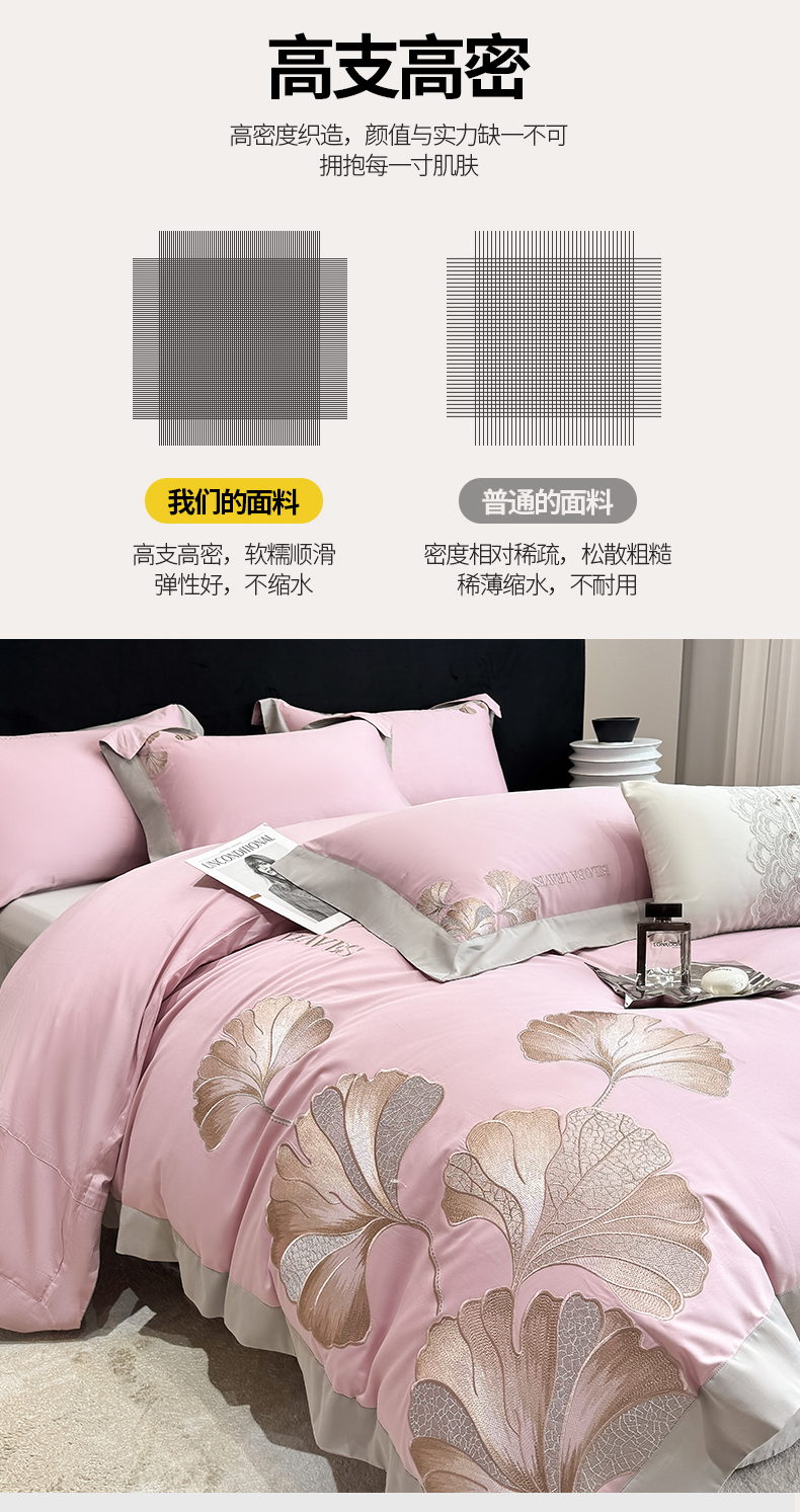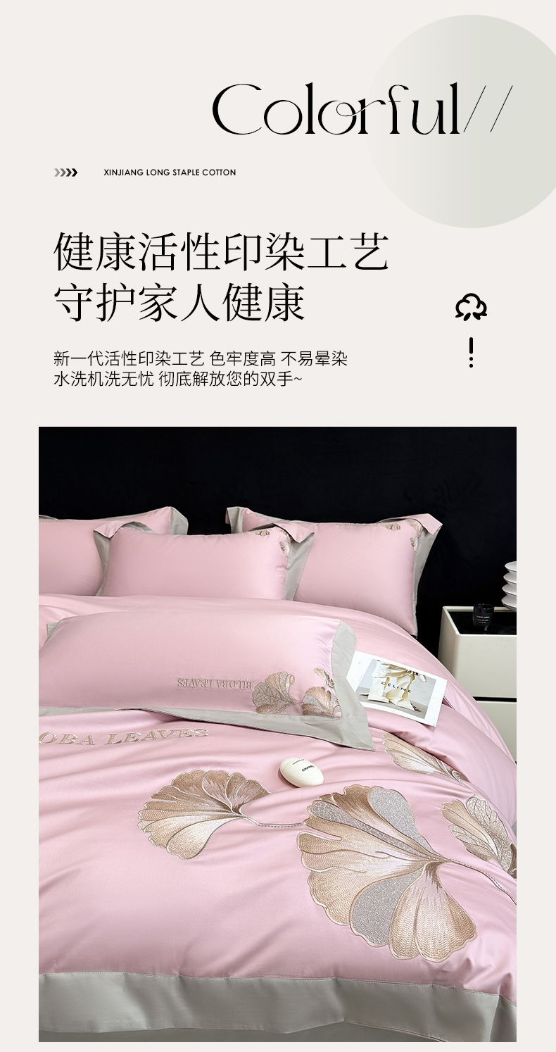 商品名称:家居1号 2025新款a类长绒棉绣花四件套 金色银杏-玫瑰粉