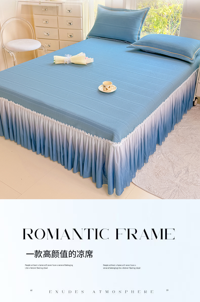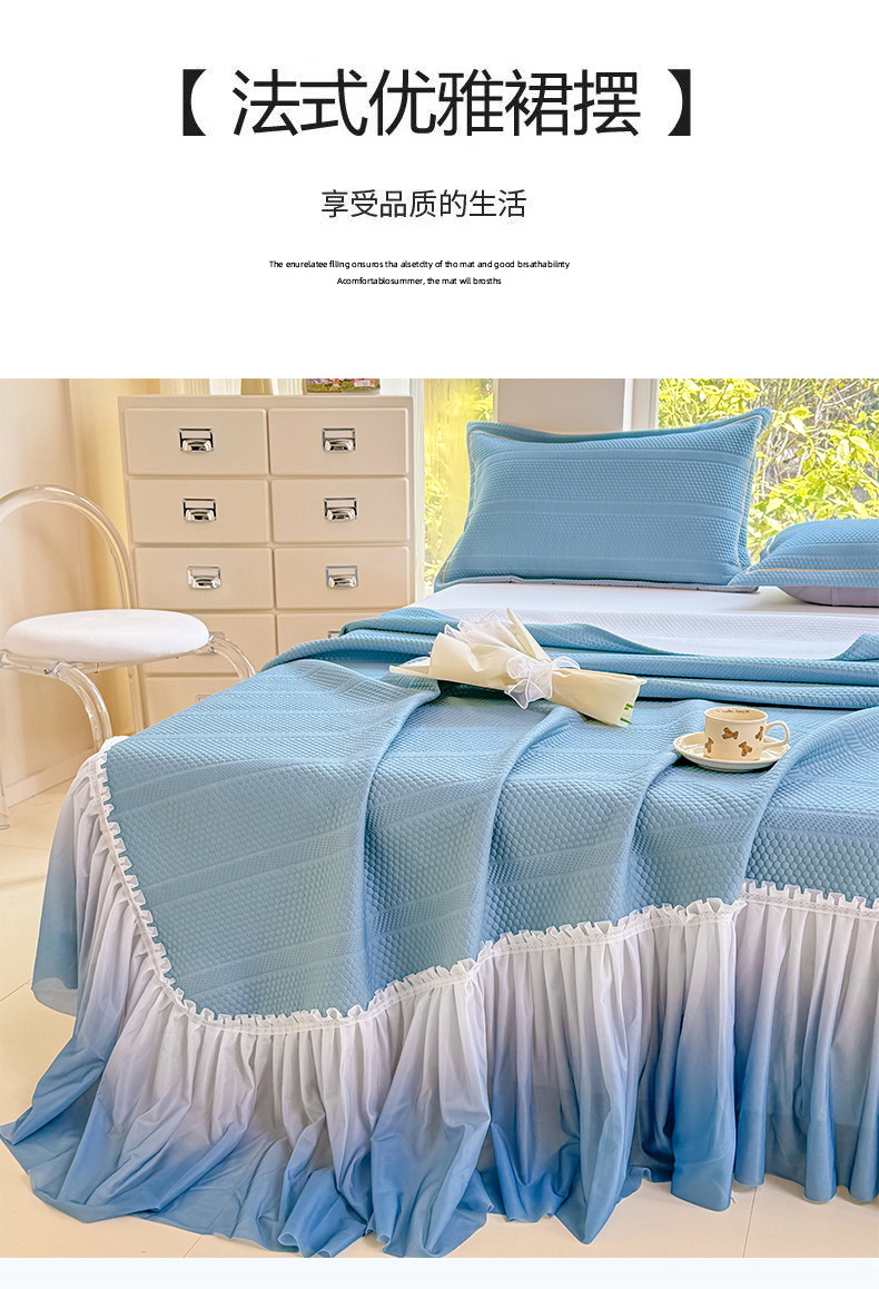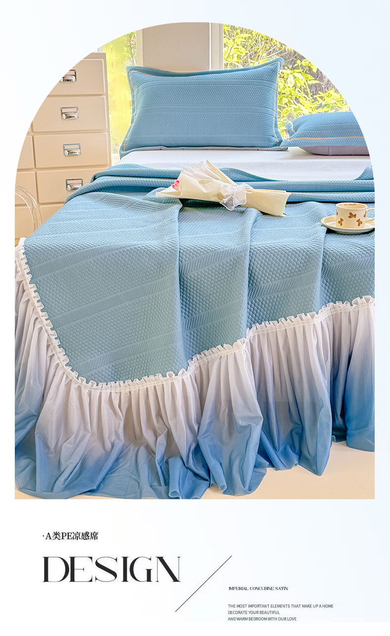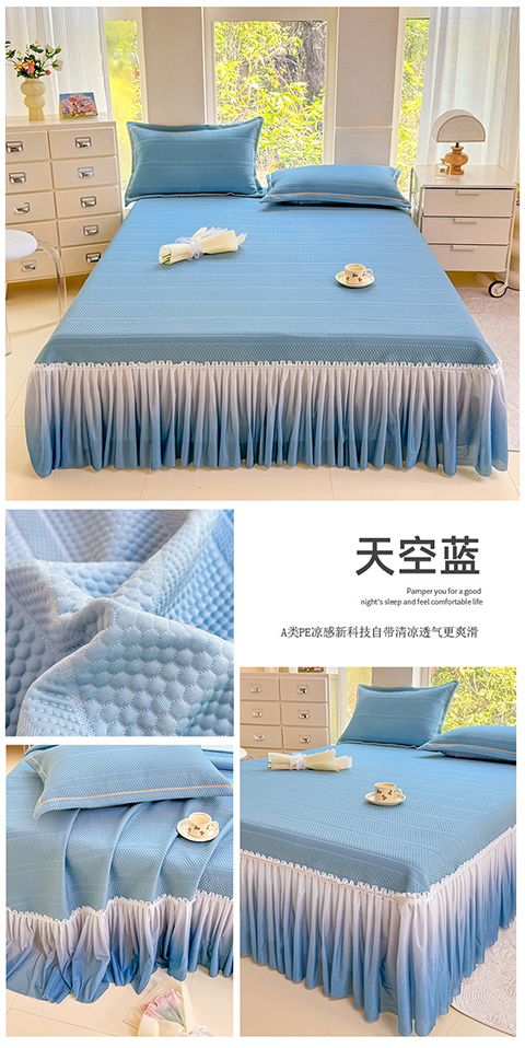 商品名称:慧菲 2025新款渐变床裙PE高分子凉感席床裙凉席三件套 天空蓝