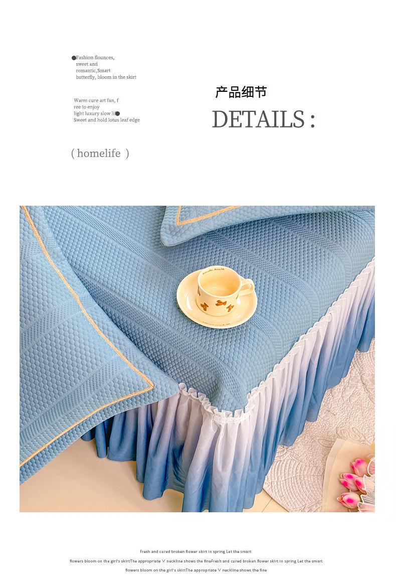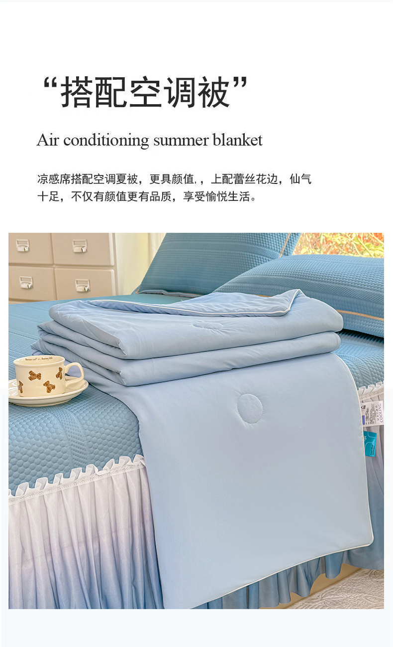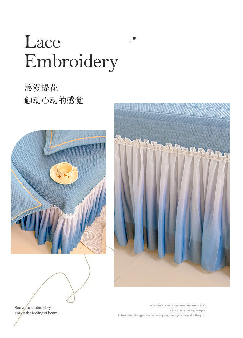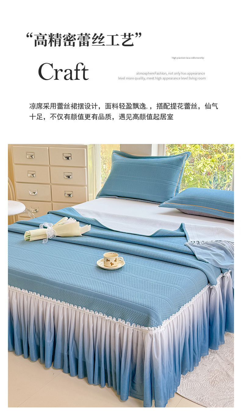 商品名称:慧菲 2025新款渐变床裙PE高分子凉感席床裙凉席三件套 天空蓝