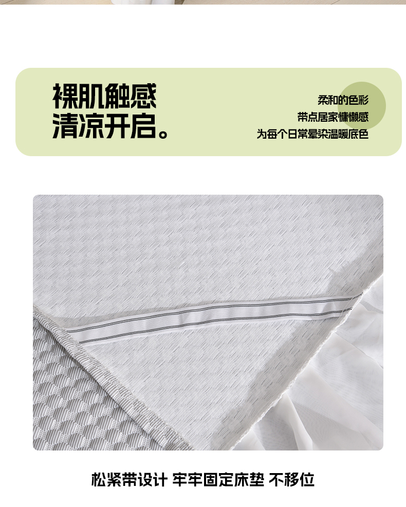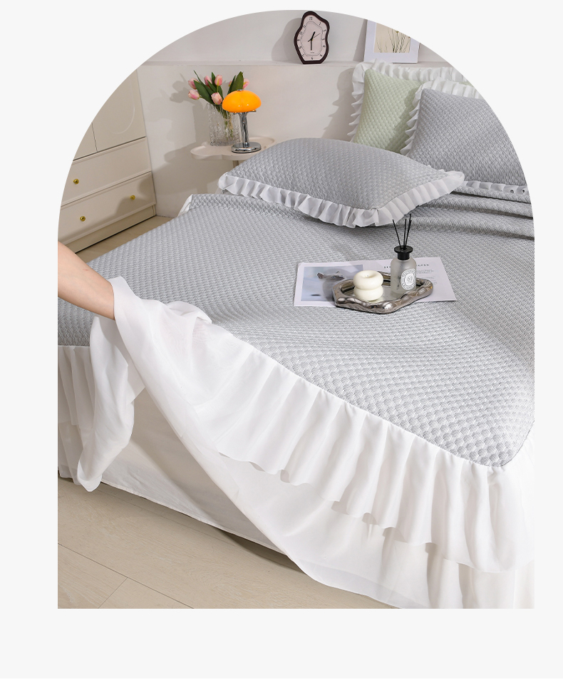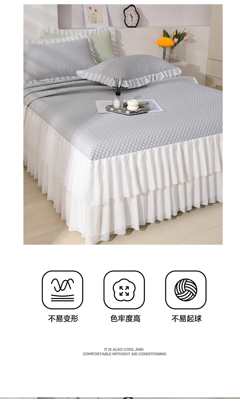 商品名称:绘萱家居 2025爆款冰凉豆豆凉席三件套床裙款冰丝软席子 冰凉豆豆-灰