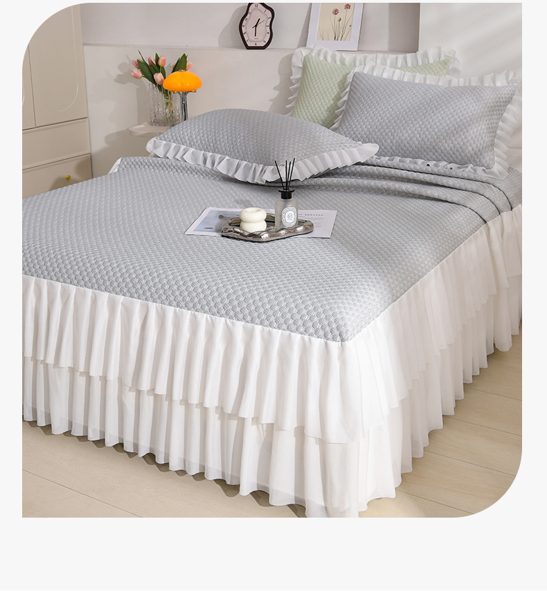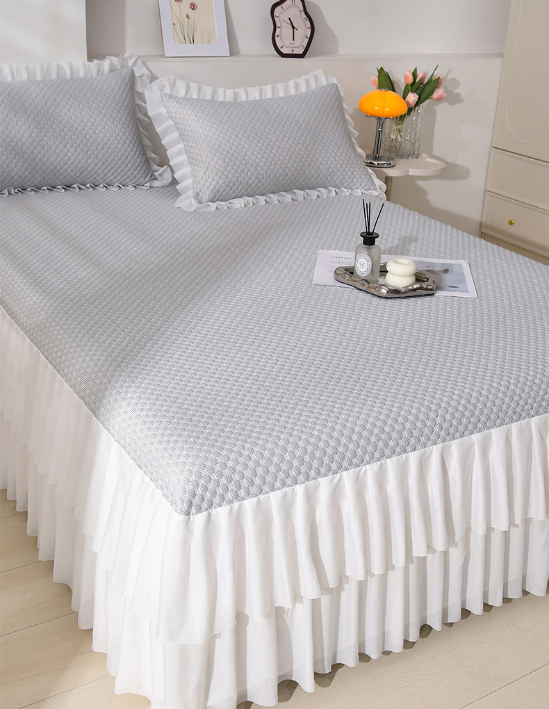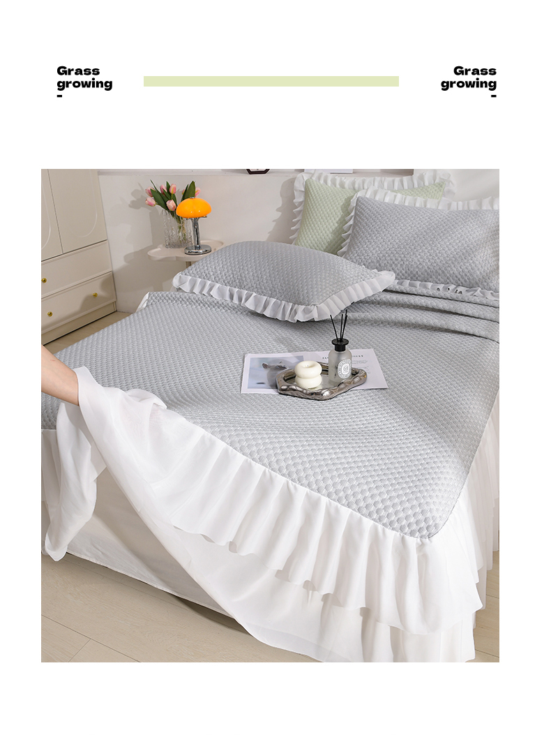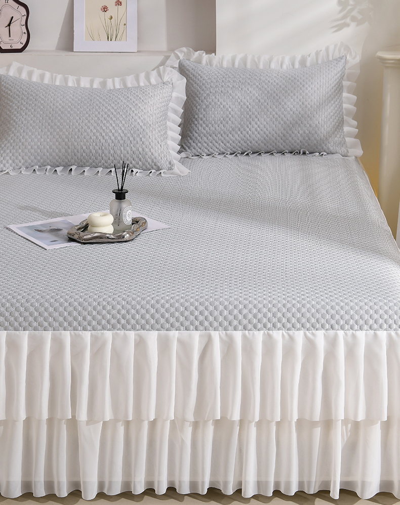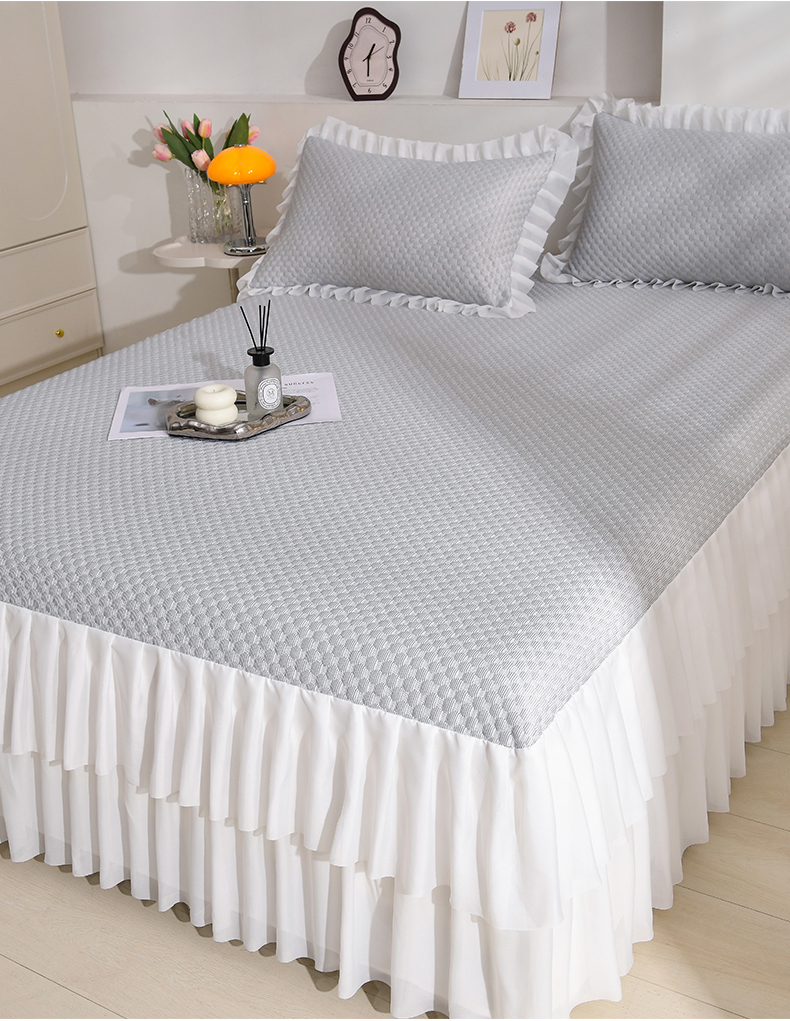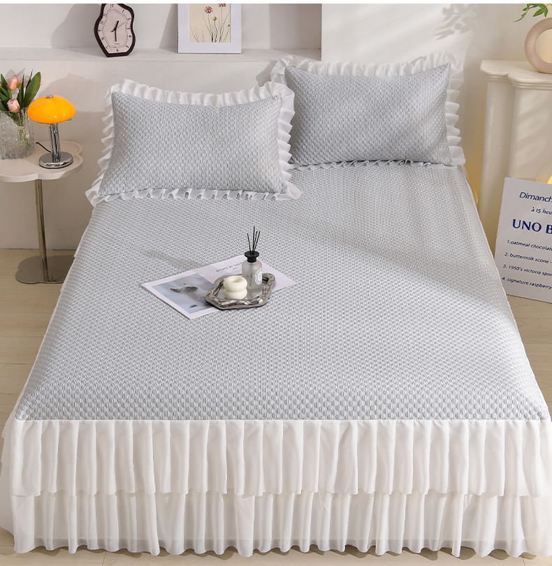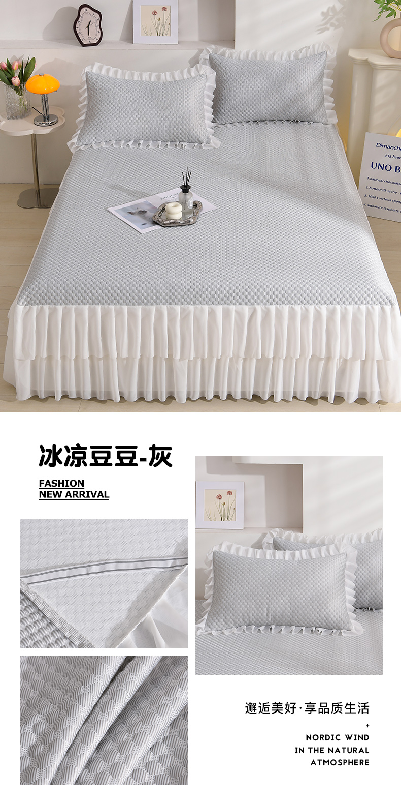 绘萱家居 2025爆款冰凉豆豆凉席三件套床裙款冰丝软席子 冰凉豆豆-灰