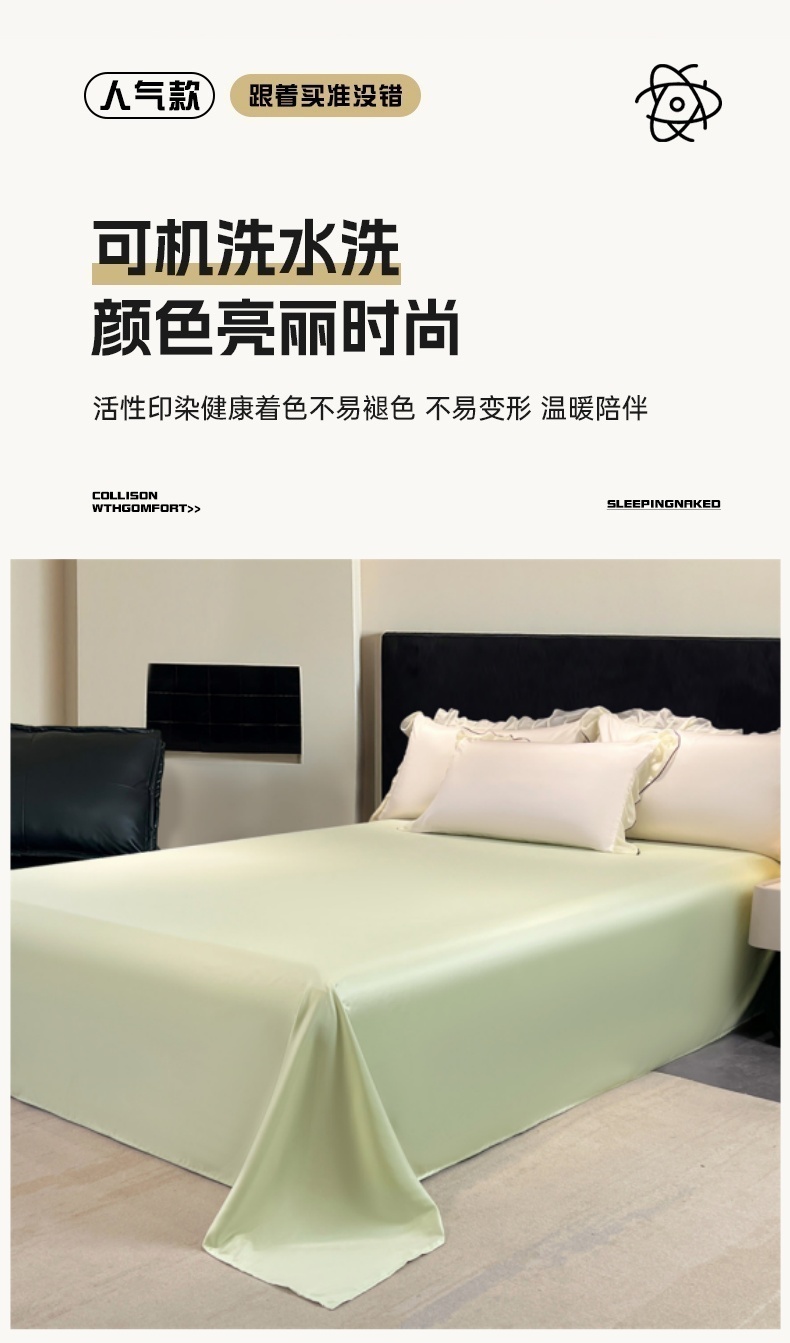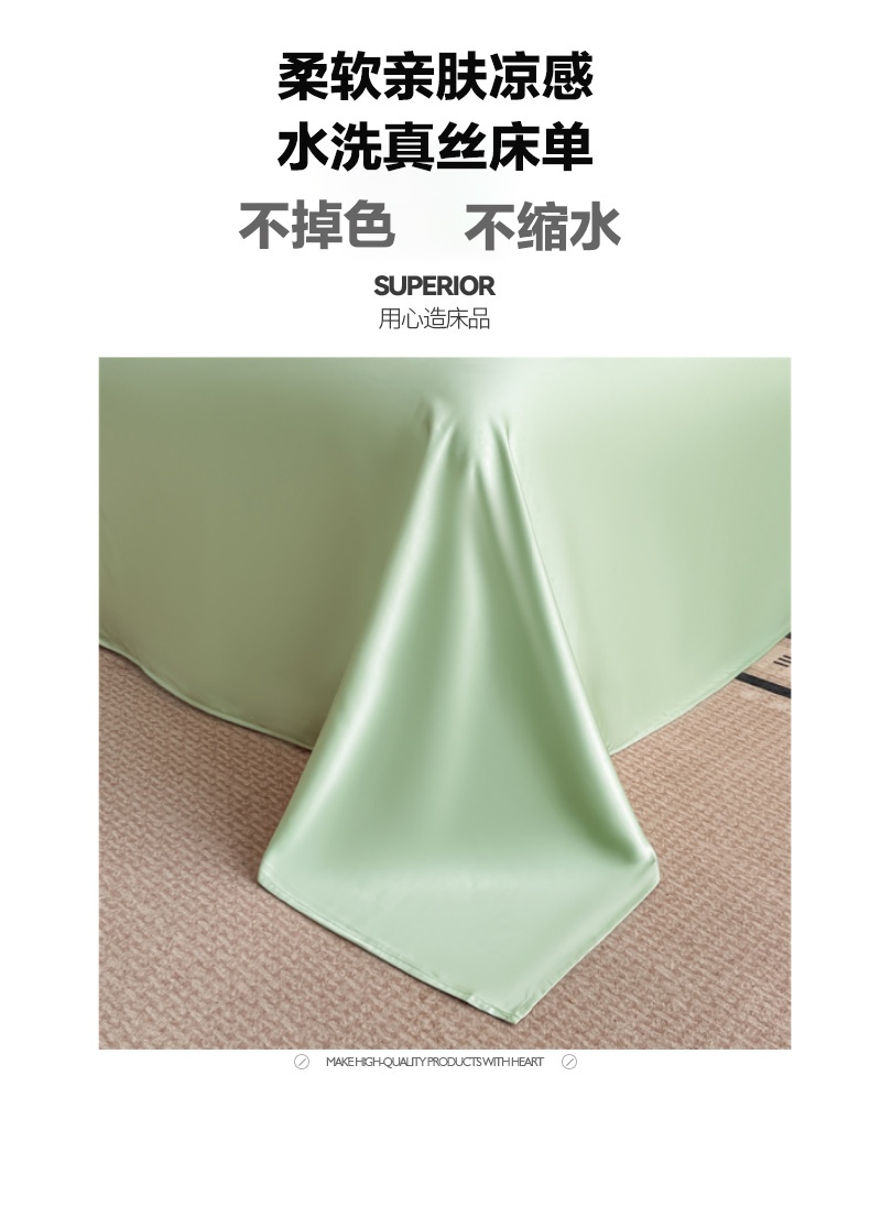 商品名称:梦舒羽 2025新款水洗真丝床单冰丝凉感宿舍被单三件套 奶油浅绿