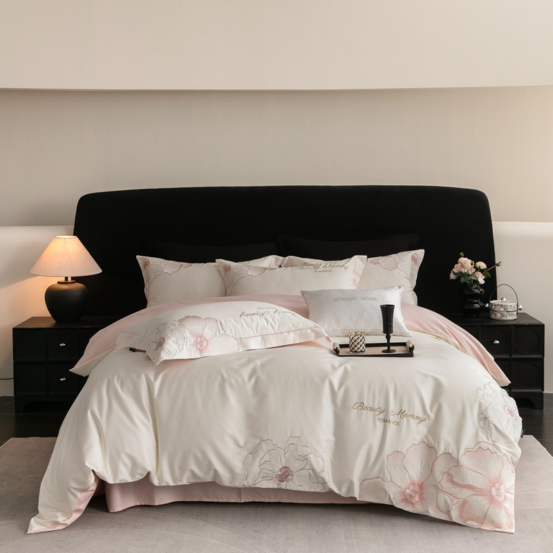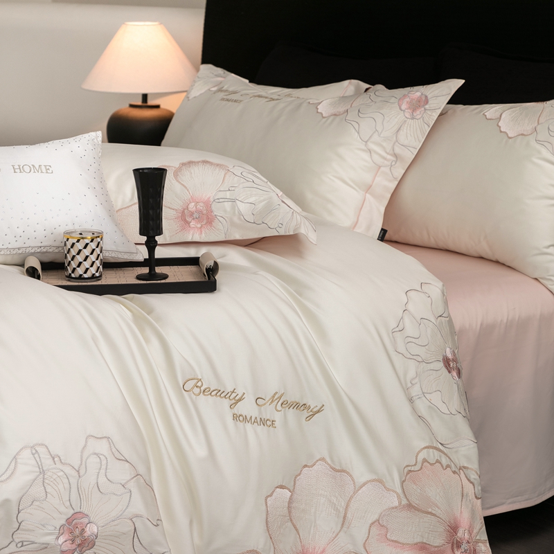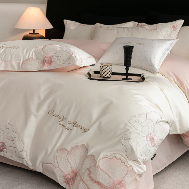 馨蕊家居 2025新款高精密刺绣轻奢风全棉四件套-棉-花至 花至-粉白