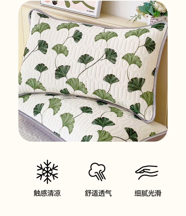 商品名称:雨彤家纺 2025年新款A类凉感丝乳胶单人枕套 秋叶缤纷