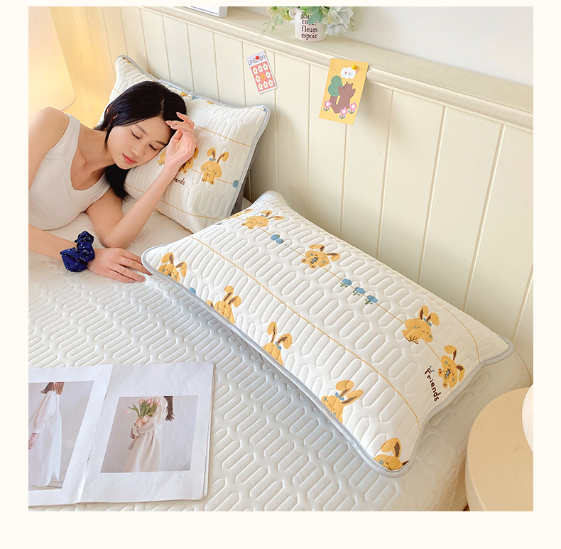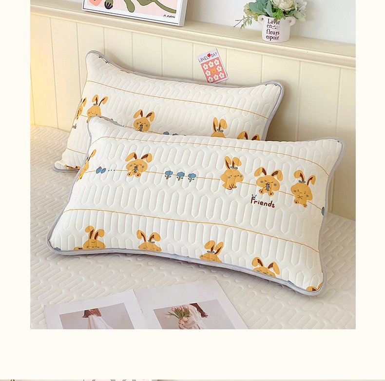 雨彤家纺 2025年新款A类凉感丝乳胶单人枕套 萌萌兔