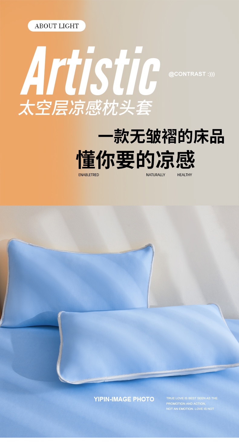 商品名称:LIFE.丽芙 2025春夏新款独家研发太空层凉感冰丝枕头套素色包边款 冰蓝