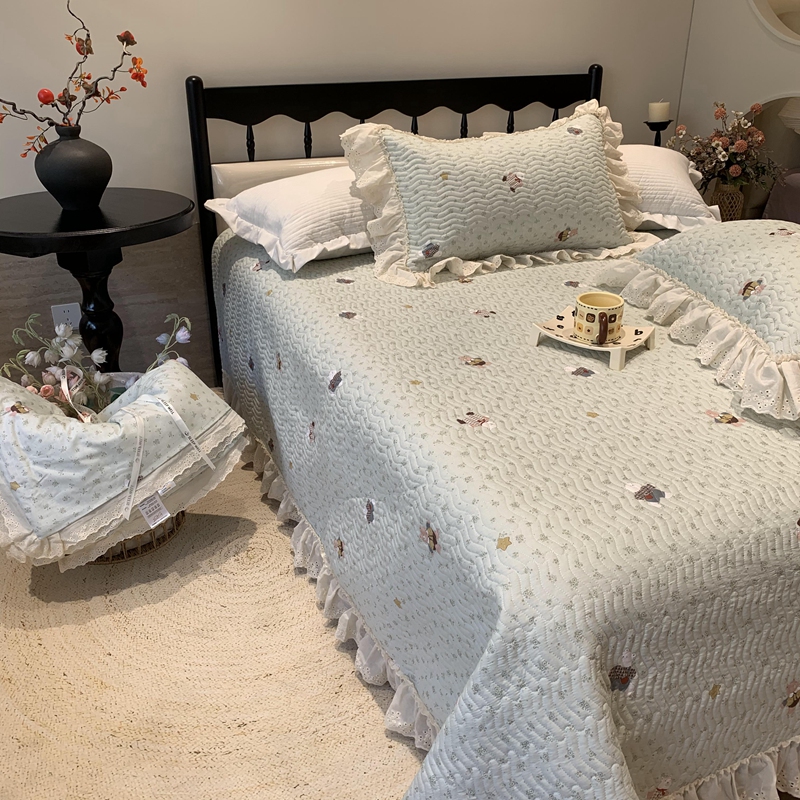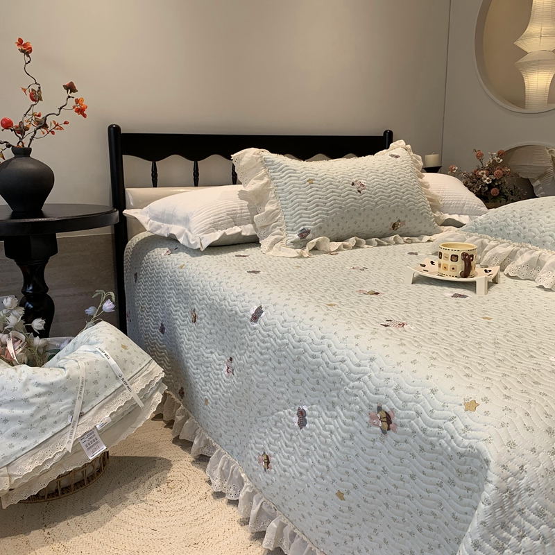 莱豫家纺 2025春夏新款纯棉全棉花边款床盖三件套 小花熊