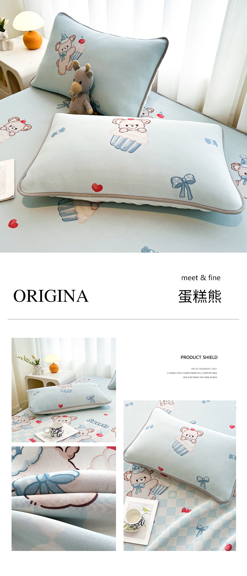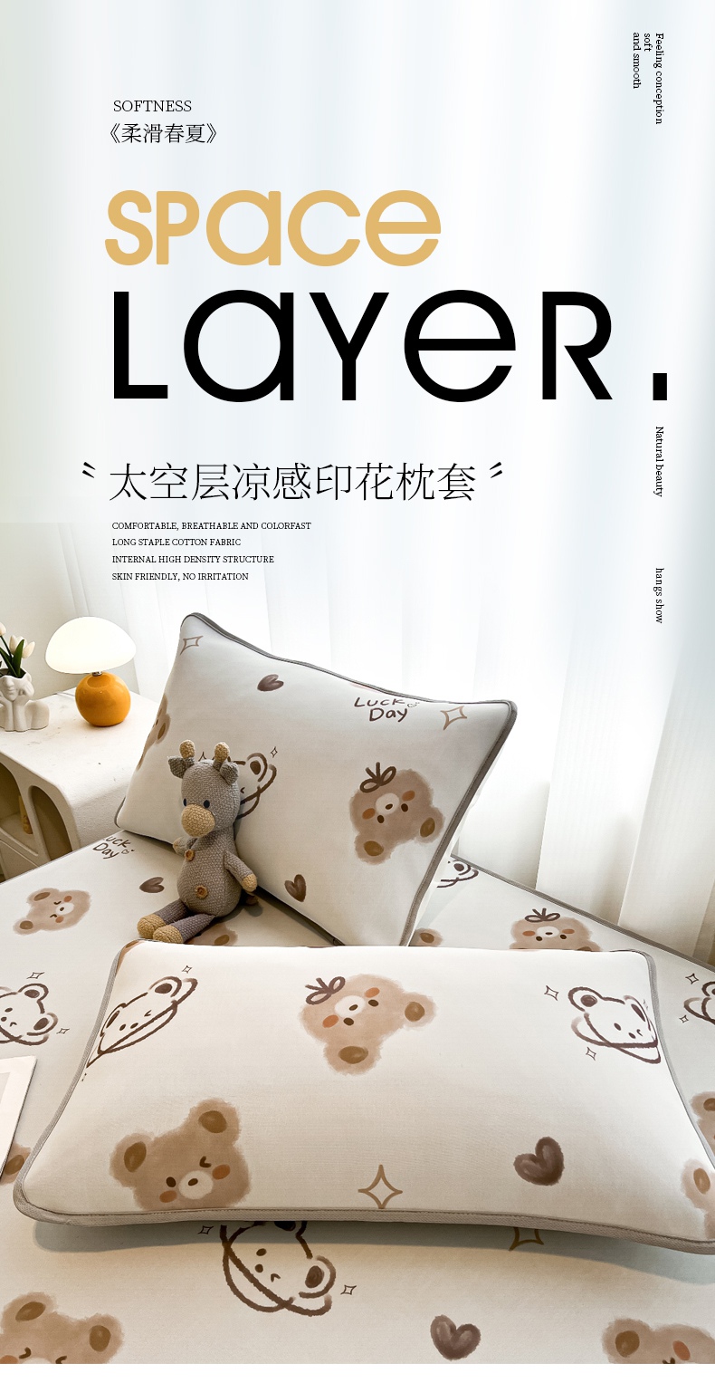 商品名称:LIFE.丽芙 2025春夏新款独家研发太空层凉感冰丝枕头套印花包边款 黄油小熊