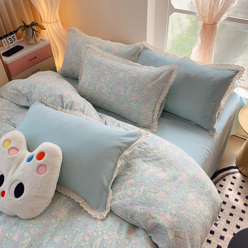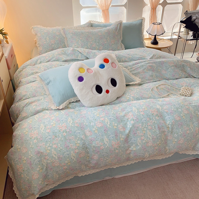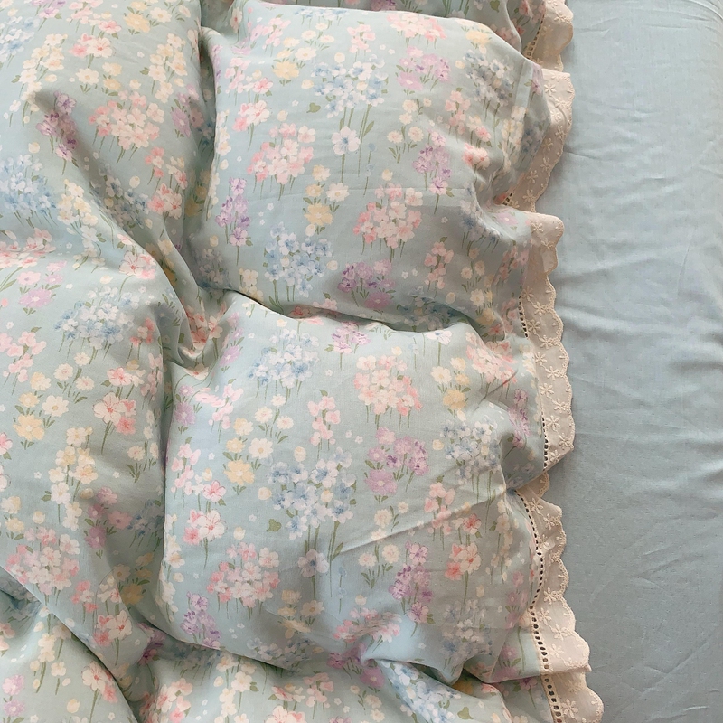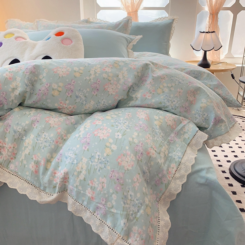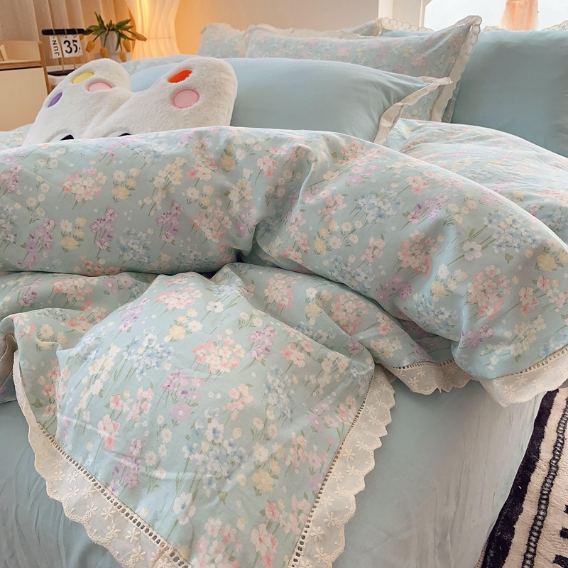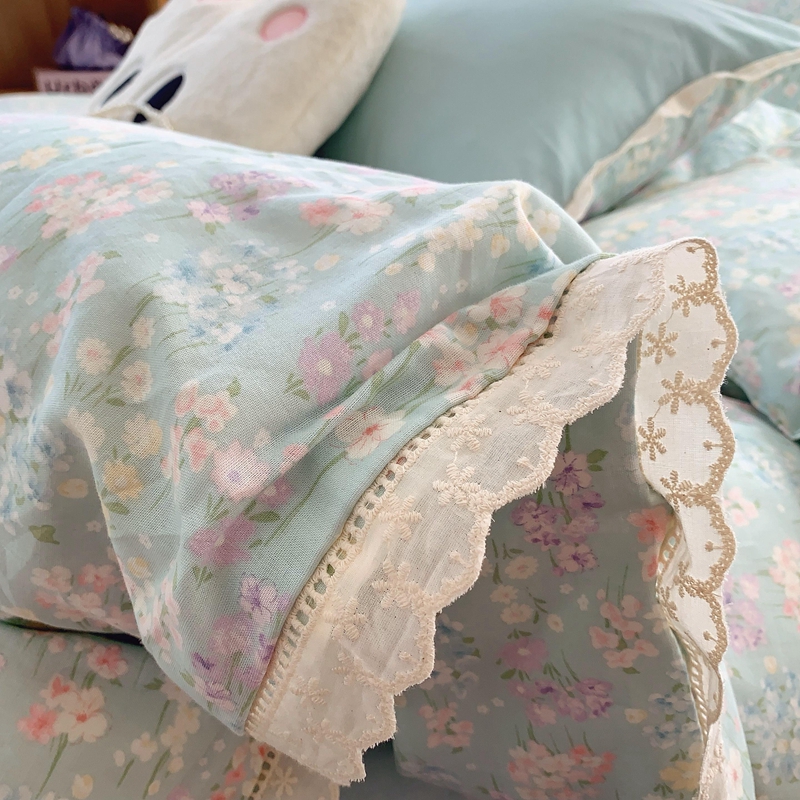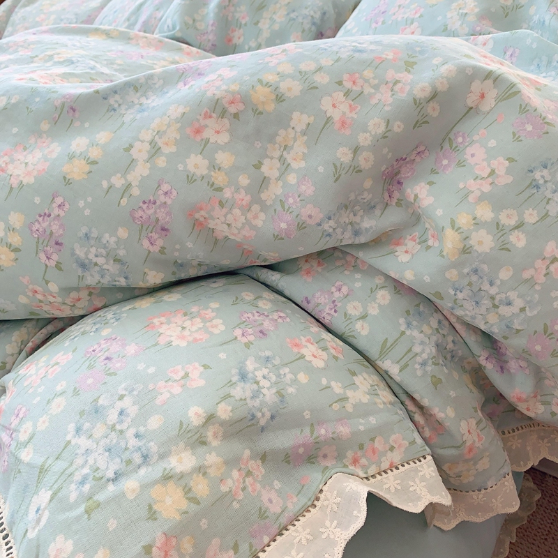 莱豫家纺 2025春夏新款双层纱花边四件套 花海恋人绿