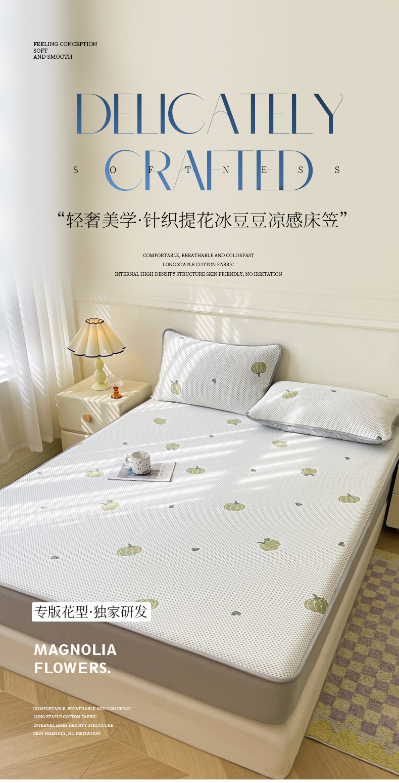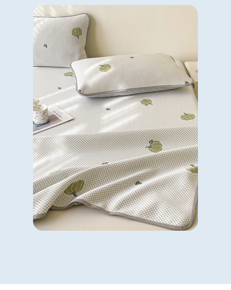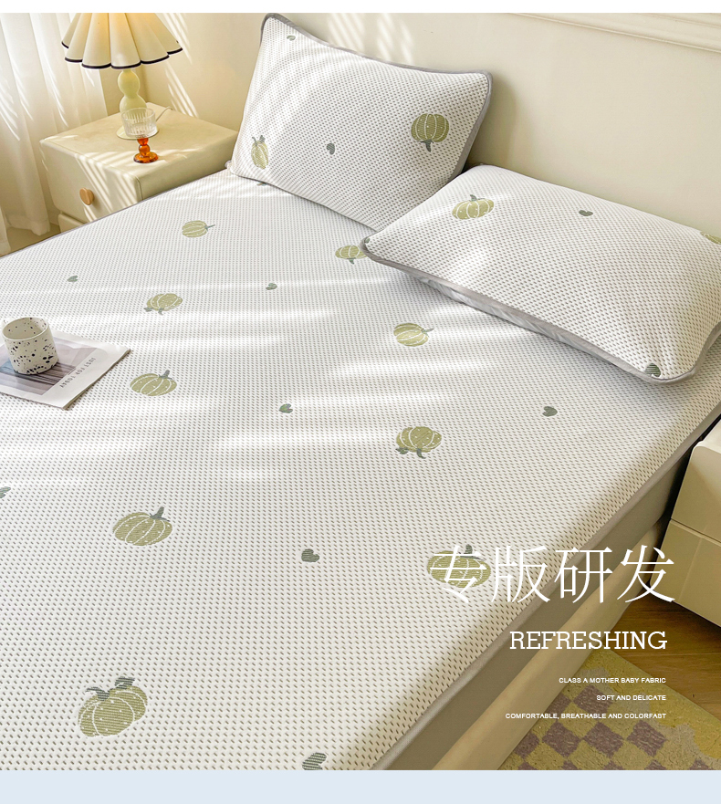 当前位置: 91家纺网 > 商品网购 > 床上用品 > 凉席 > 其他凉席 > LIFE.丽芙 2025春夏季新品A类针织提花冰凉豆豆凉感软席床笠三件套加厚冰丝凉席床罩单件(450克)-风格一 南瓜-绿