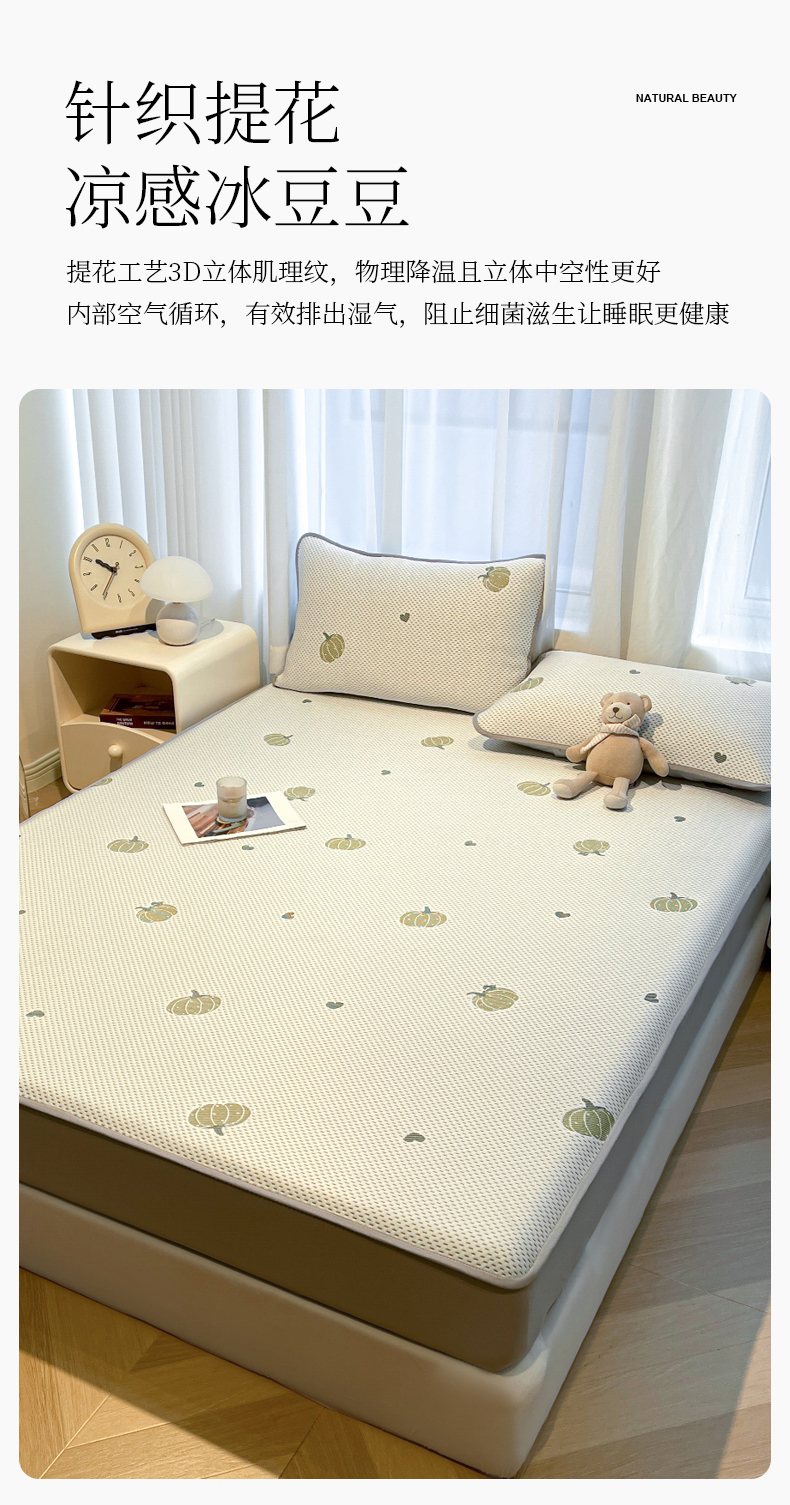 当前位置: 91家纺网 > 商品网购 > 床上用品 > 凉席 > 其他凉席 > LIFE.丽芙 2025春夏季新品A类针织提花冰凉豆豆凉感软席床笠三件套加厚冰丝凉席床罩单件(450克)-风格二 南瓜-绿