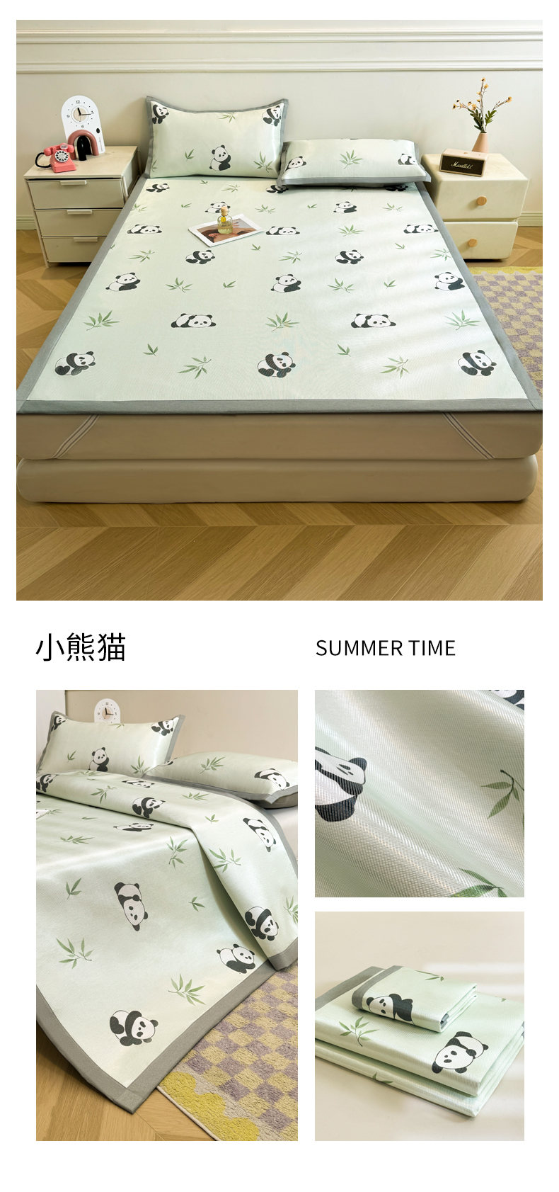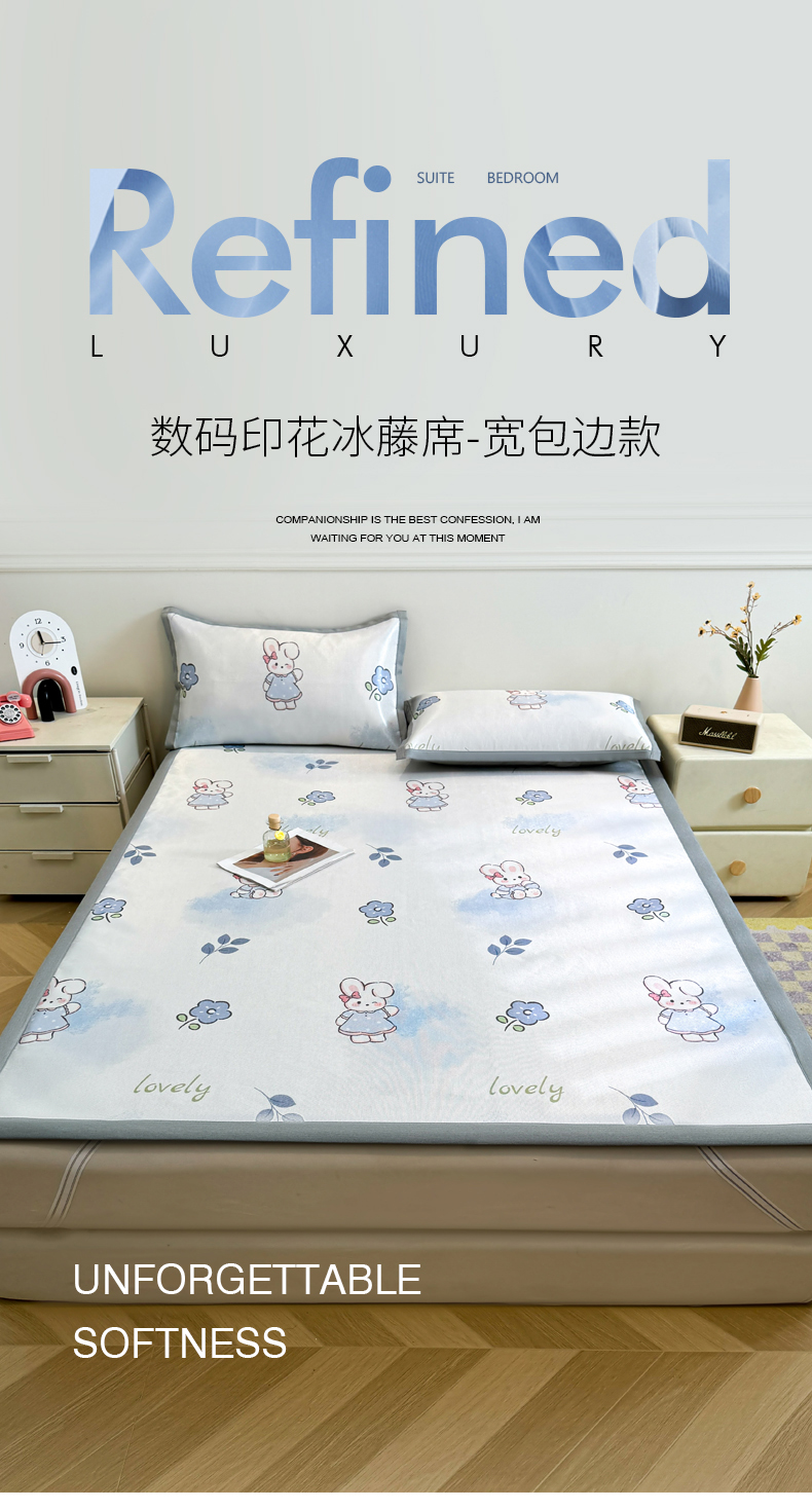 商品名称:LIFE.丽芙 2025春夏季新品数码印花冰藤凉席平铺冰丝凉席印花小清新绑带款三件套(风格二) 安妮兔