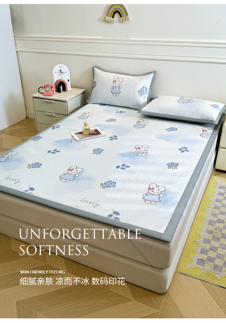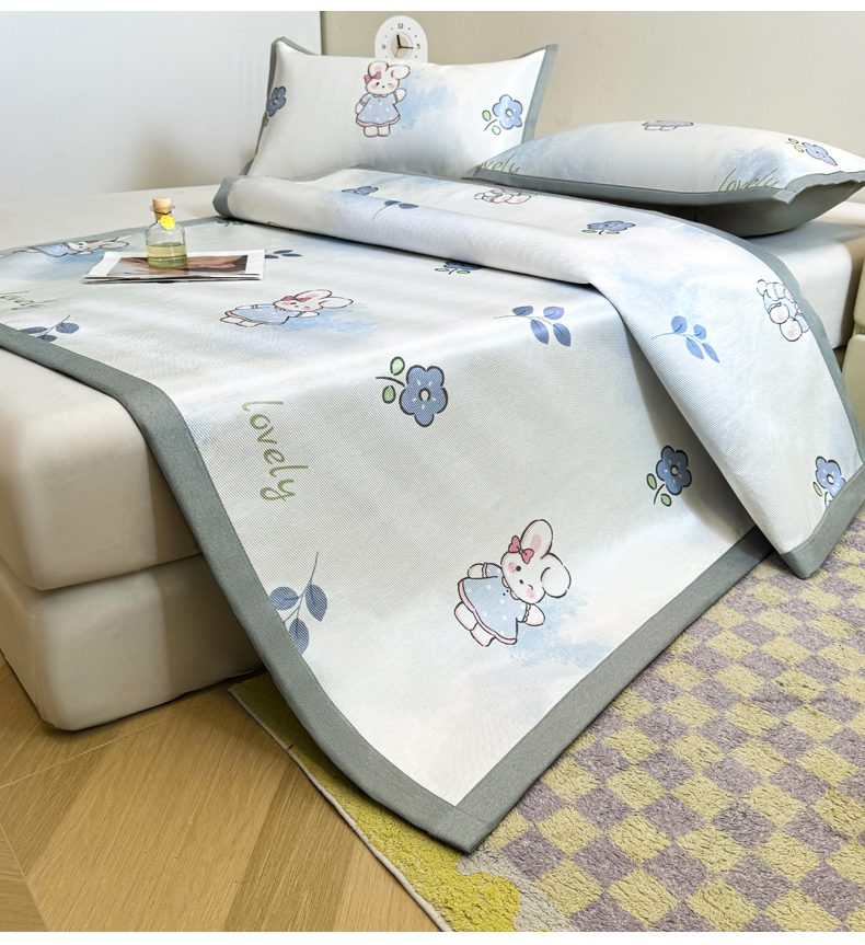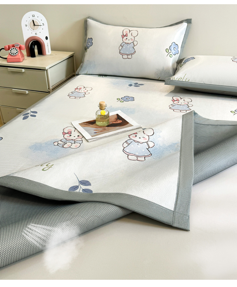 LIFE.丽芙 2025春夏季新品数码印花冰藤凉席平铺冰丝凉席印花小清新绑带款三件套(风格二) 安妮兔