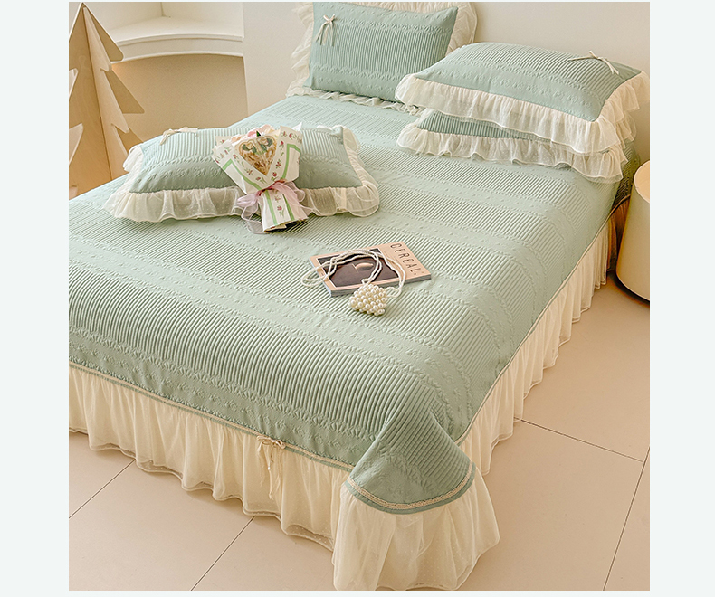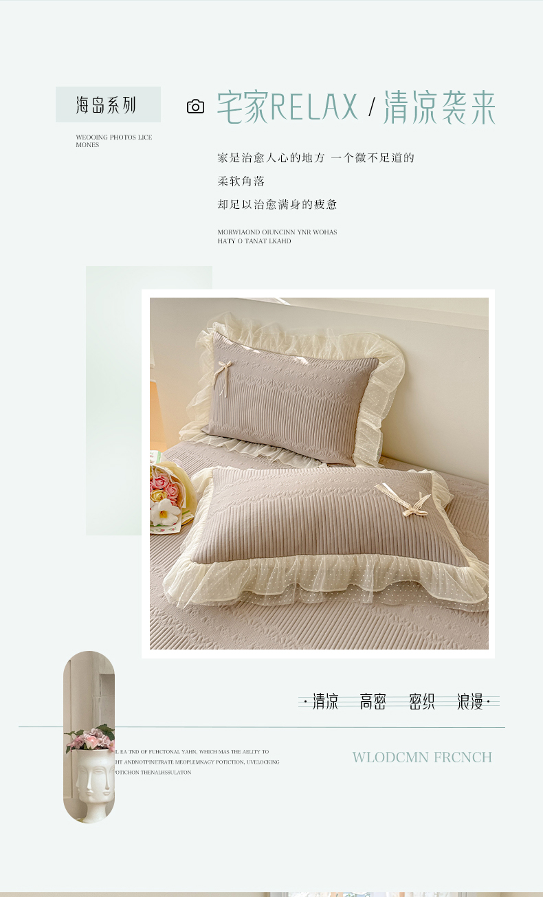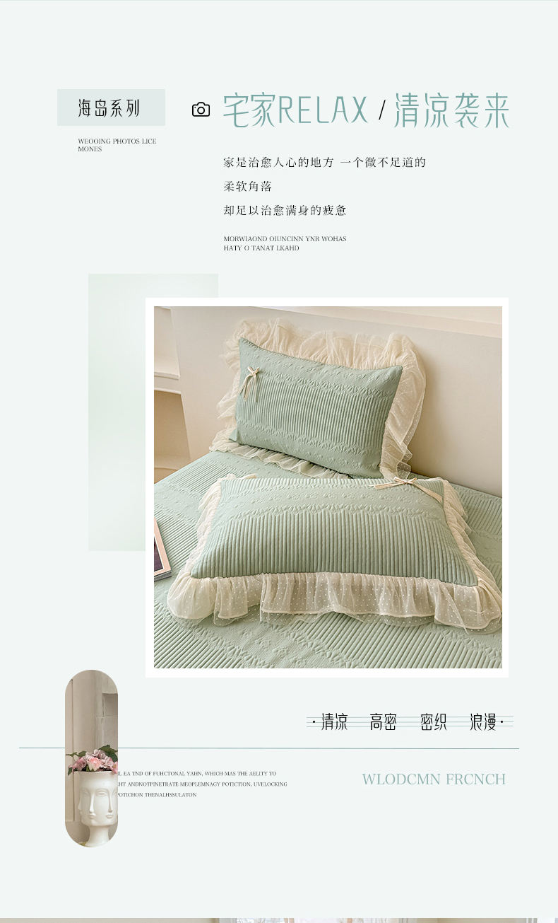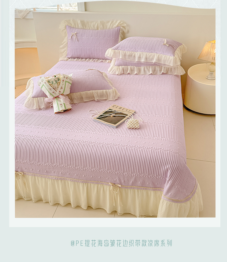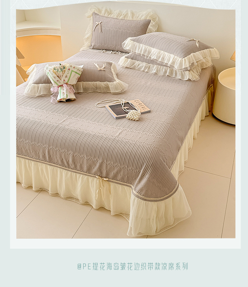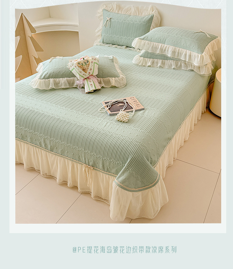 商品名称:(总)蓝邻家纺 2025春夏新款PE提花海岛皱花边织带款凉席系列-场景二