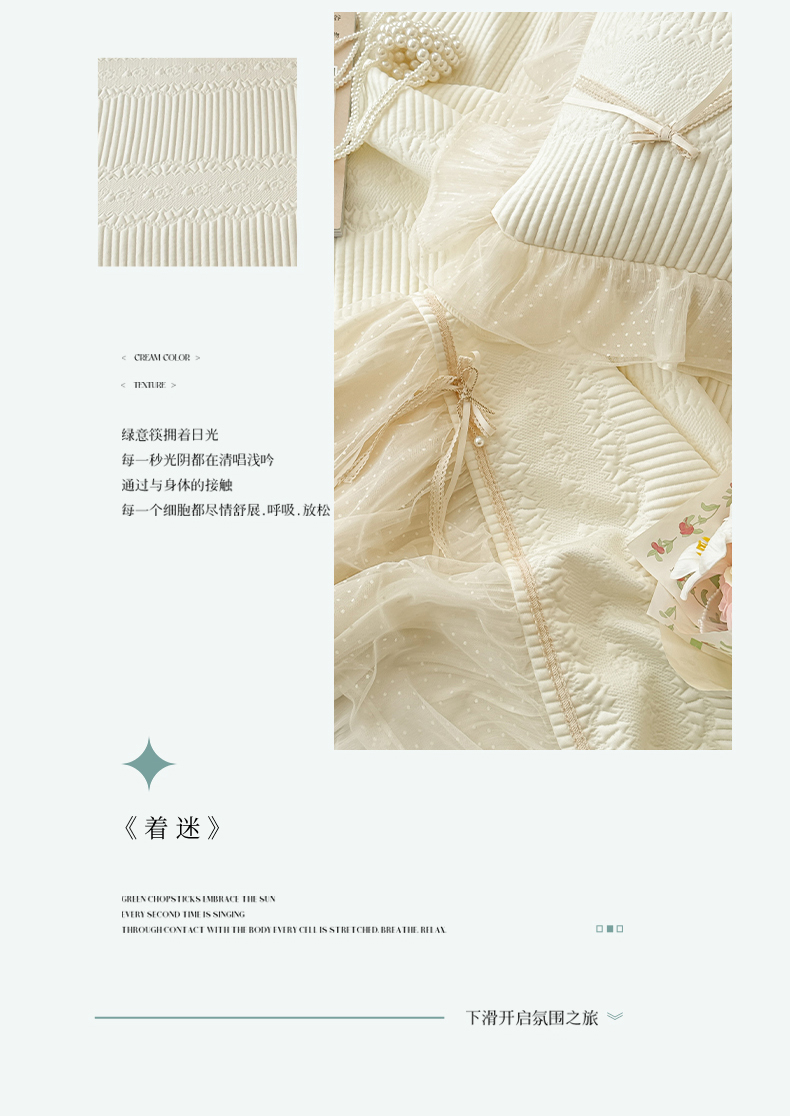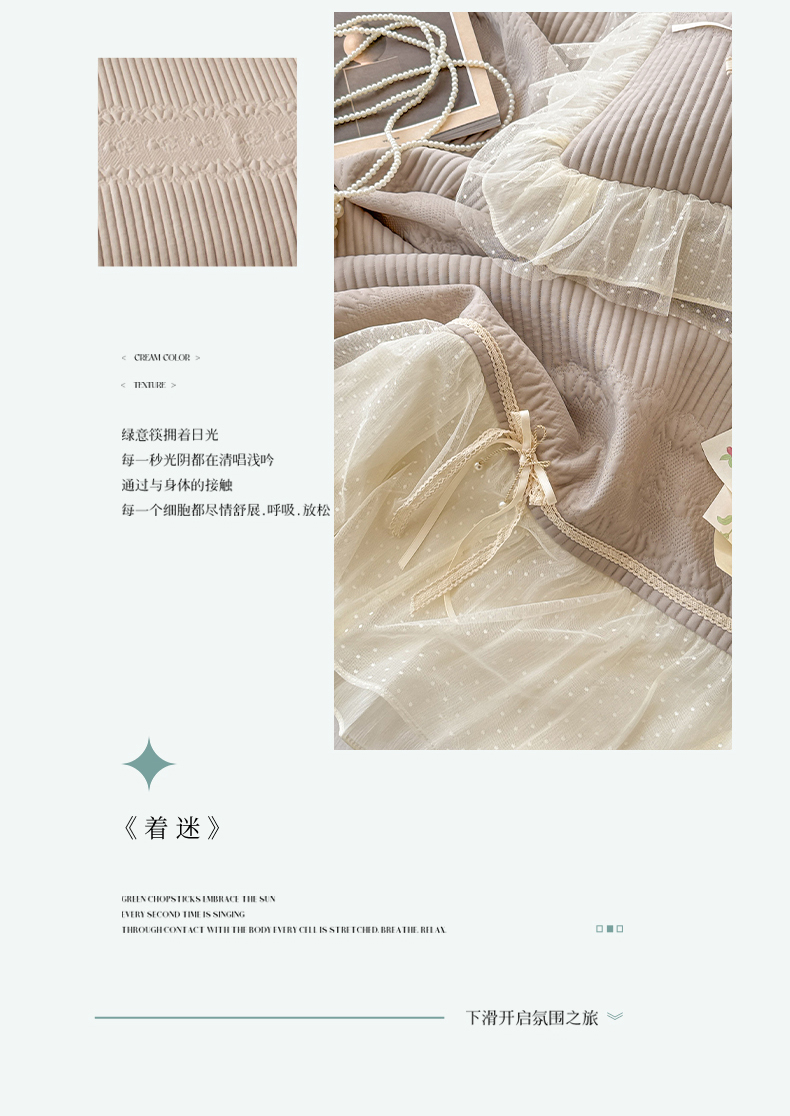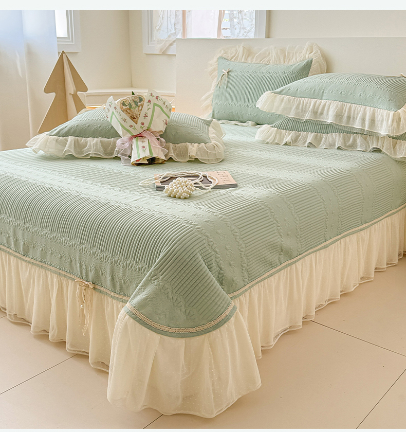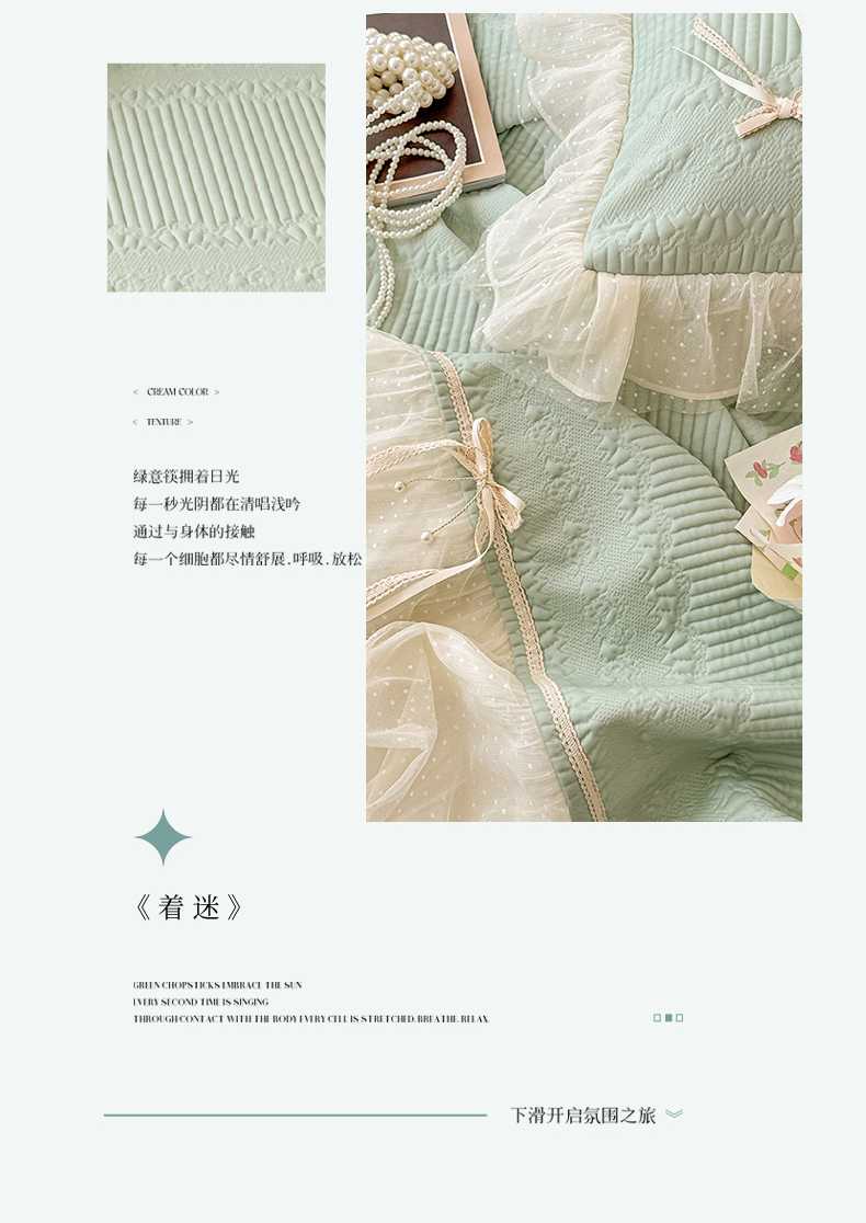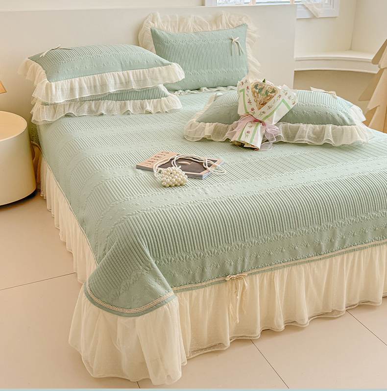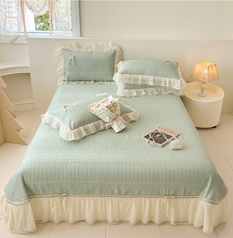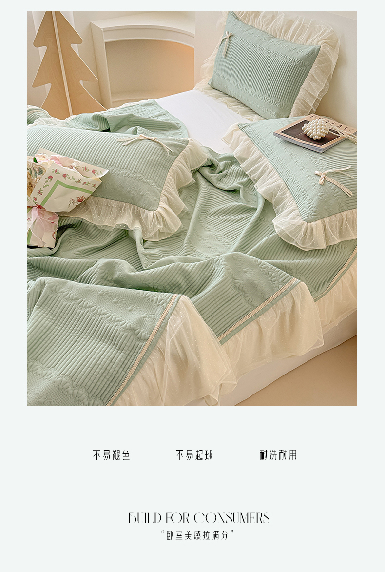 商品名称:(总)蓝邻家纺 2025春夏新款PE提花海岛皱花边织带款凉席系列-场景二