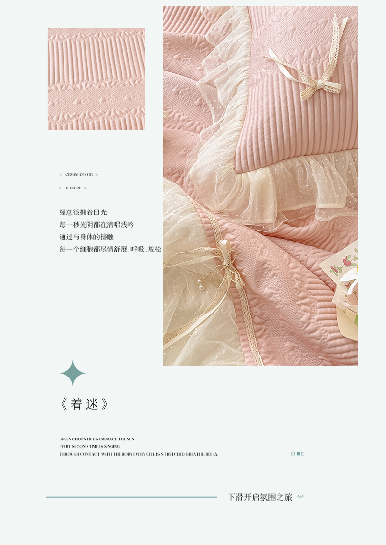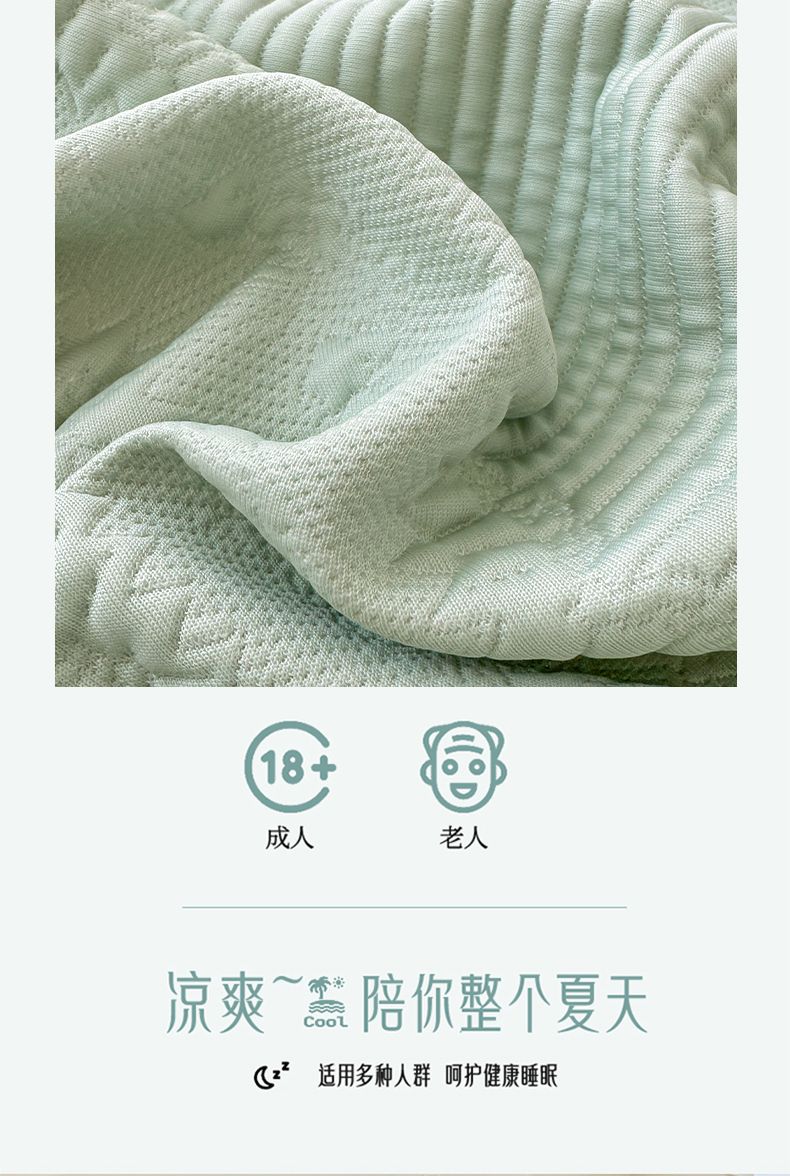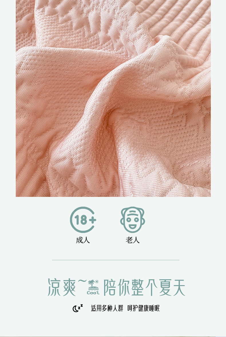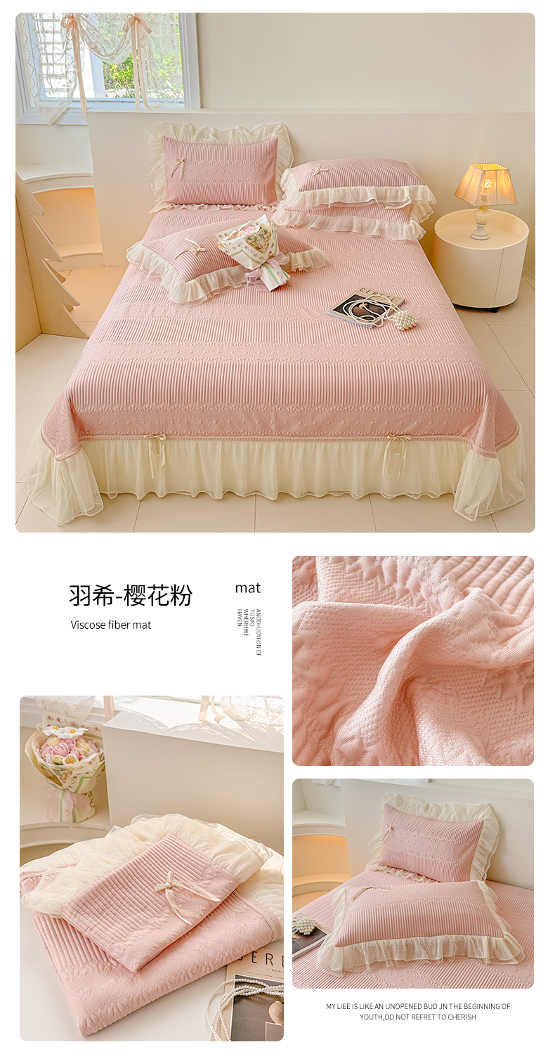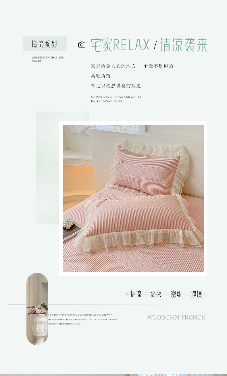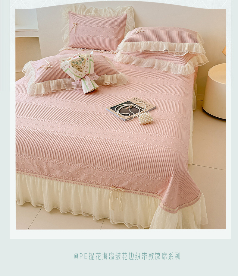 (总)蓝邻家纺 2025春夏新款PE提花海岛皱花边织带款凉席系列-场景二