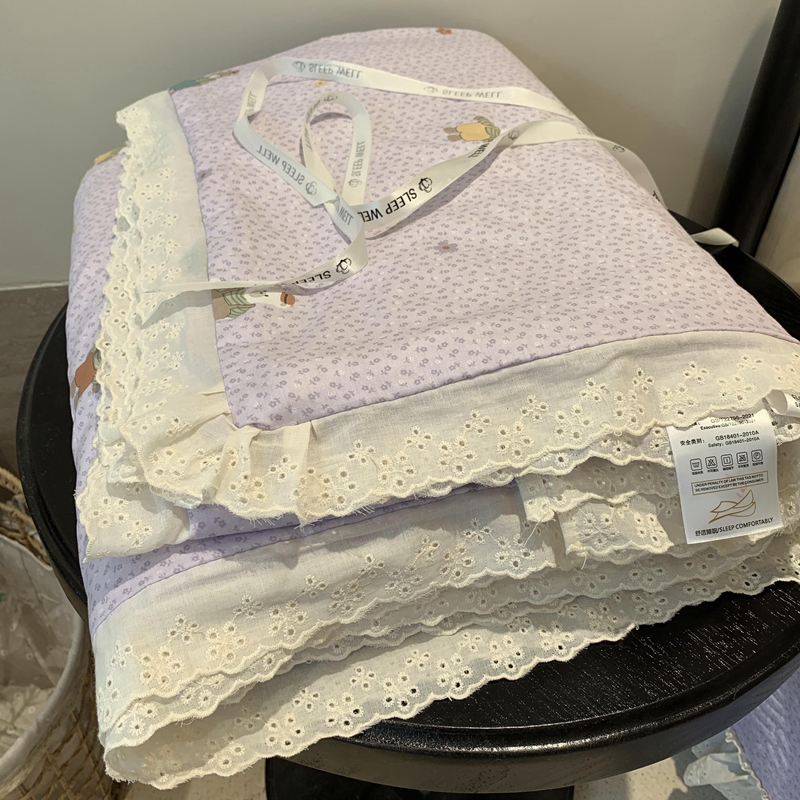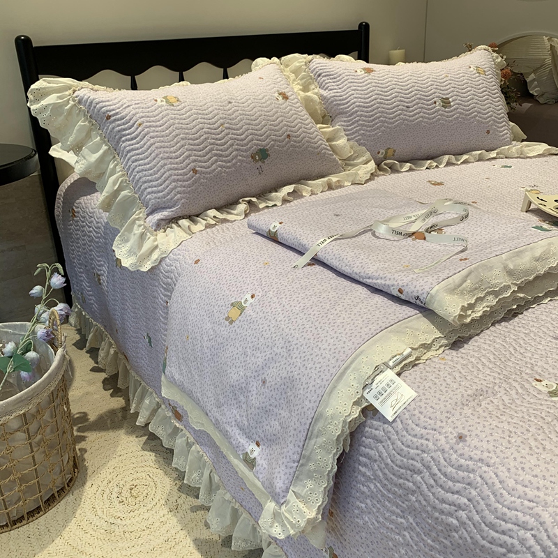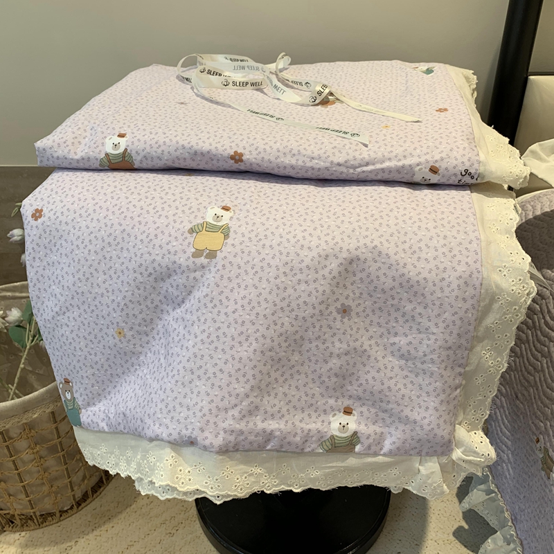 莱豫2025新款纯棉花边夏被床盖 呆呆熊-夏被