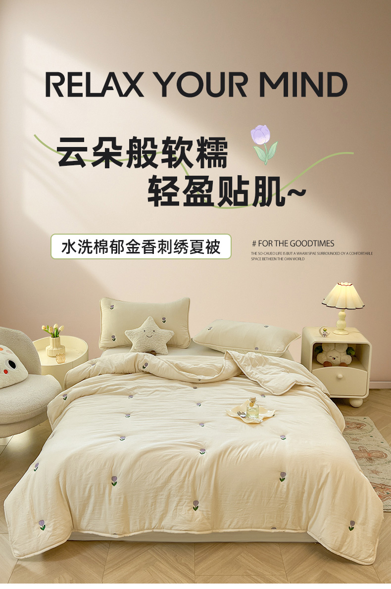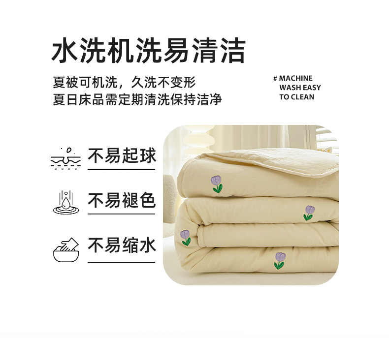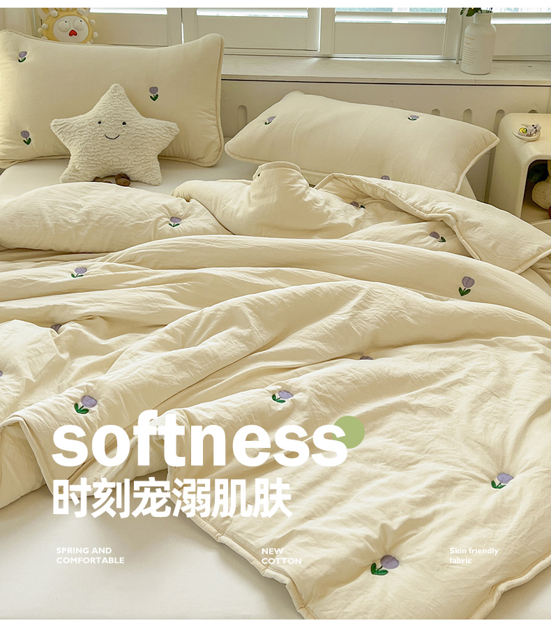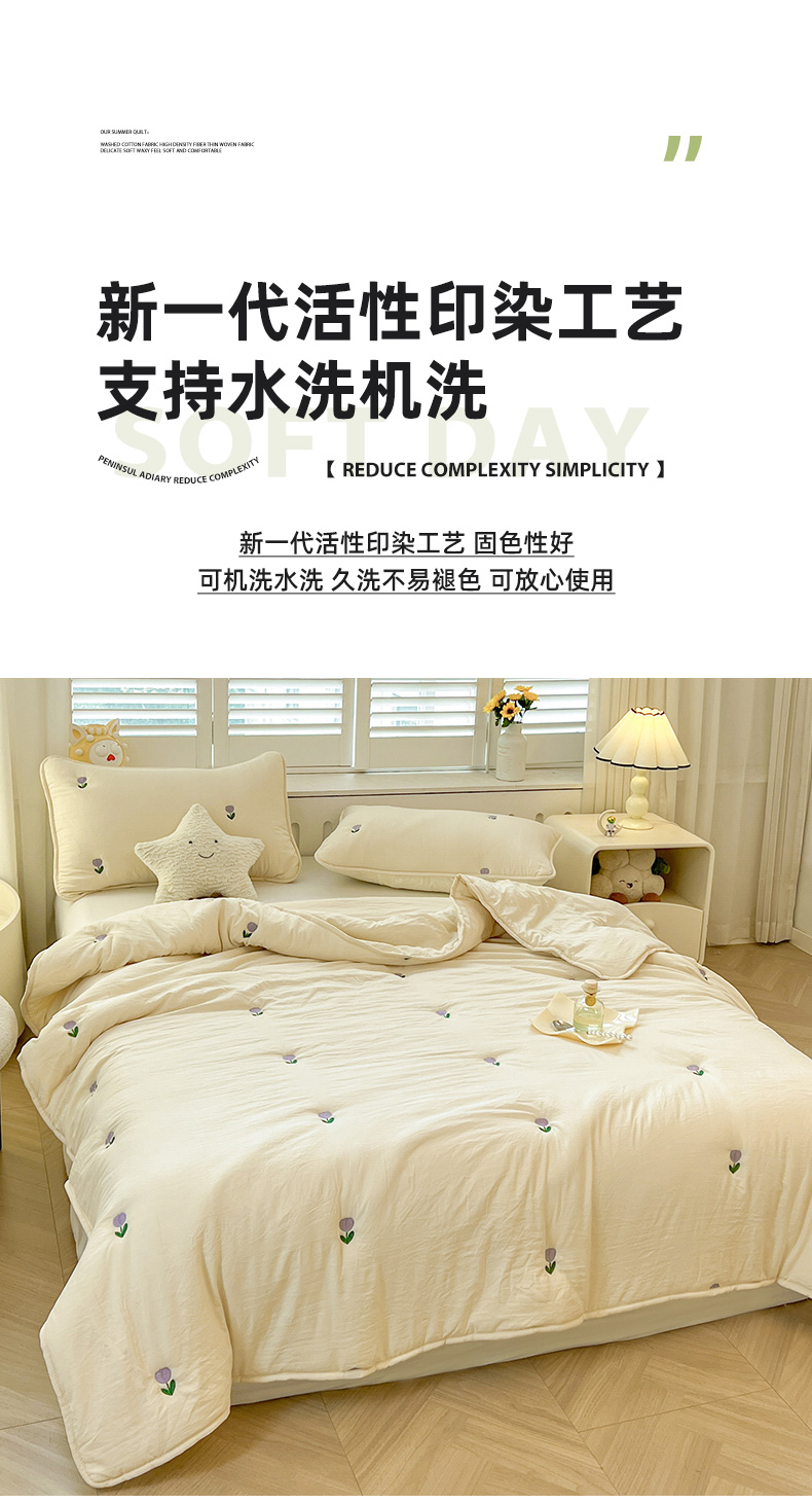 推推家纺 2025新款水洗棉玫瑰刺绣夏被 郁金香-米白