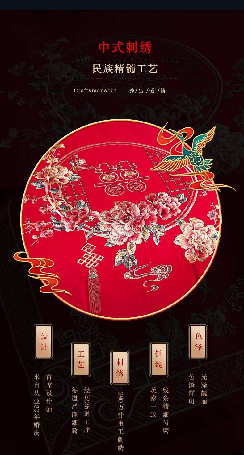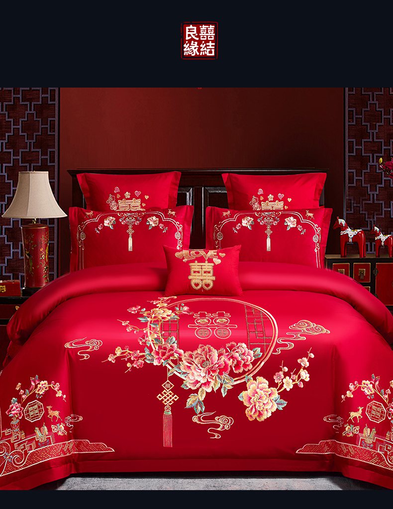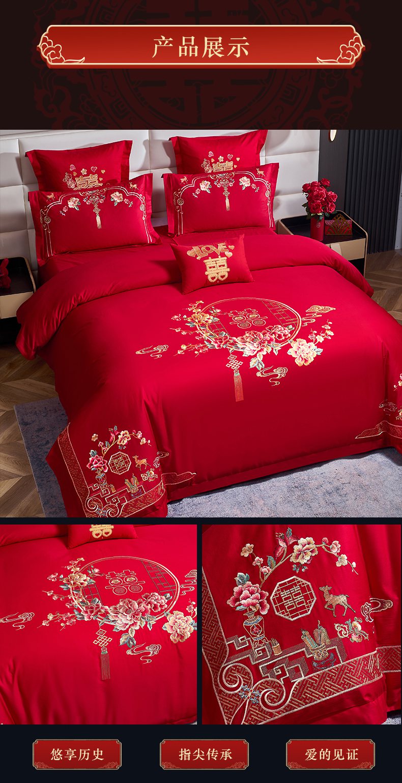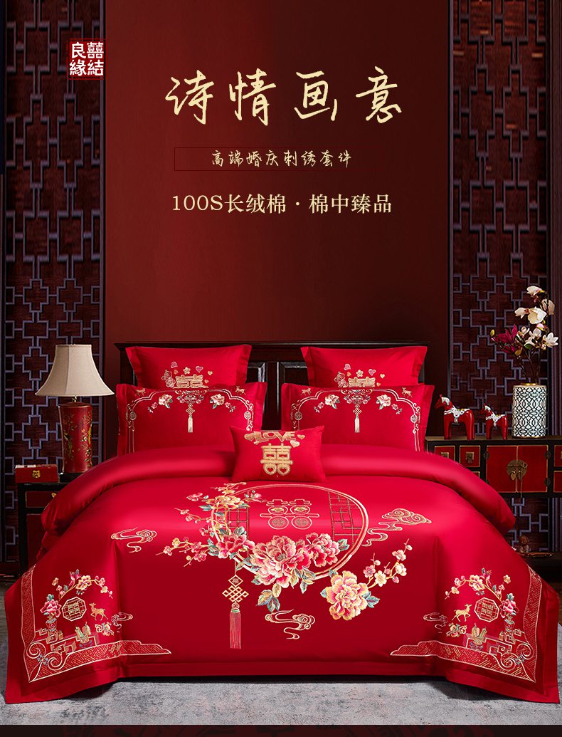 当前位置: 91家纺网 > 商品网购 > 床品套件 > 四件套 > 婚庆四件套 > 洽想家 2025新款全棉新中式刺绣婚庆四件套多件套(控价销售最低不低于288元) 诗情画意