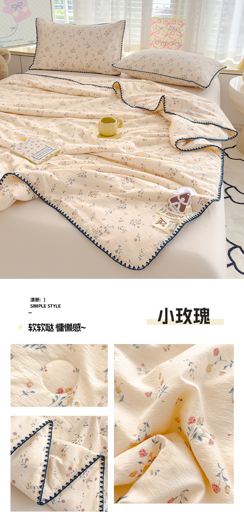 商品名称:星巴k家纺 2025新款贝壳绣三角针花边工艺款贝壳边夏被夏凉被空调被四件套【可提供买家秀】 小玫瑰
