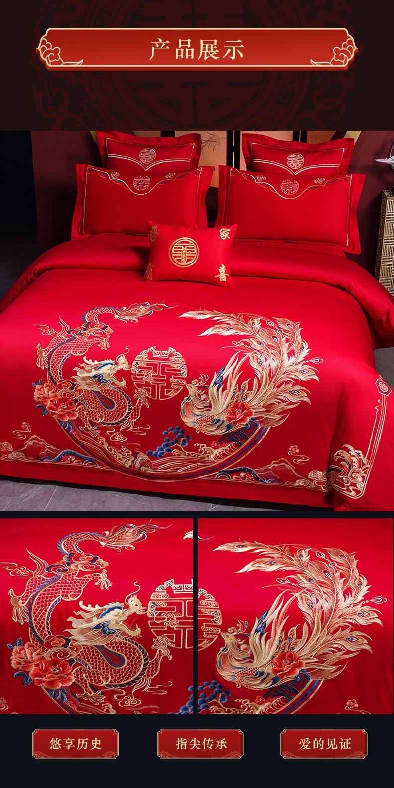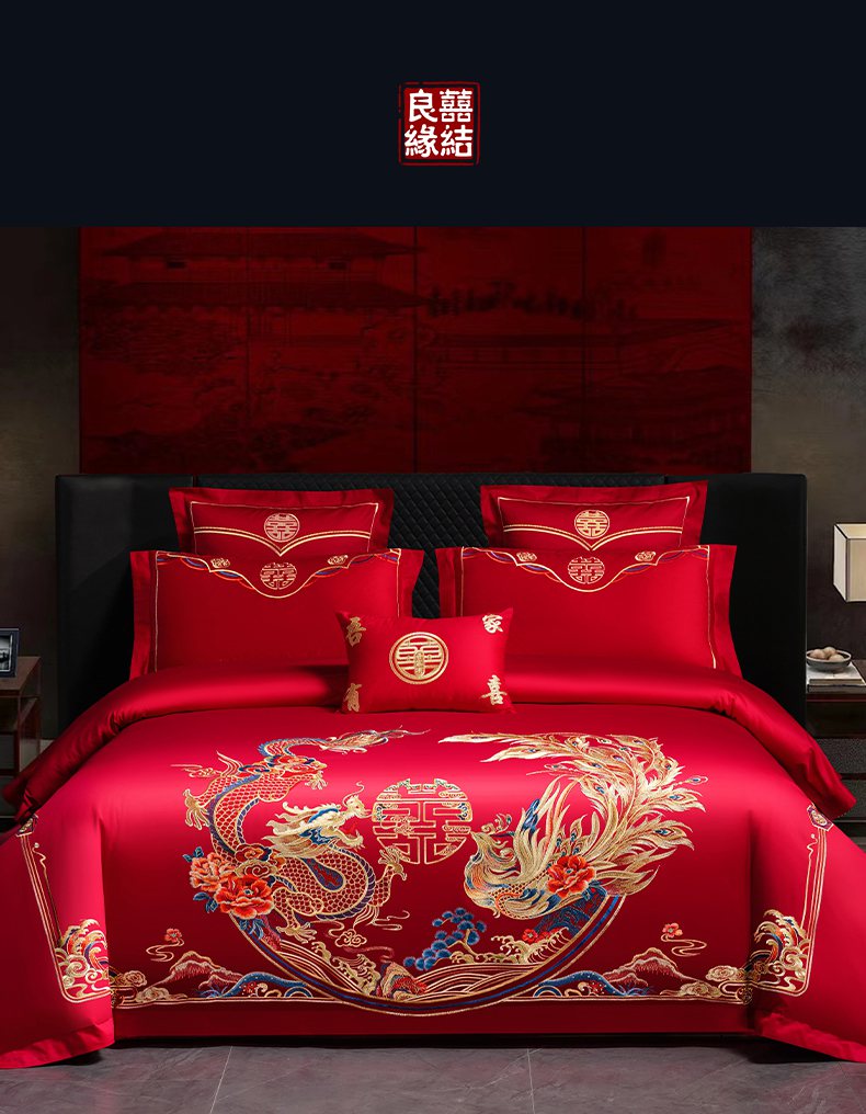 当前位置: 91家纺网 > 商品网购 > 床品套件 > 四件套 > 婚庆四件套 > 洽想家 2025新款全棉刺绣婚庆四件套多件套(控价销售最低不低于288元) 龙章凤彩