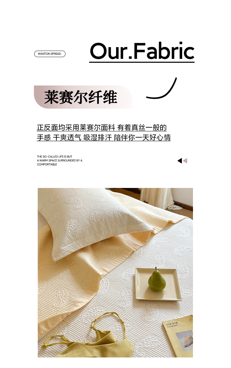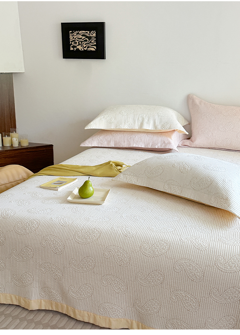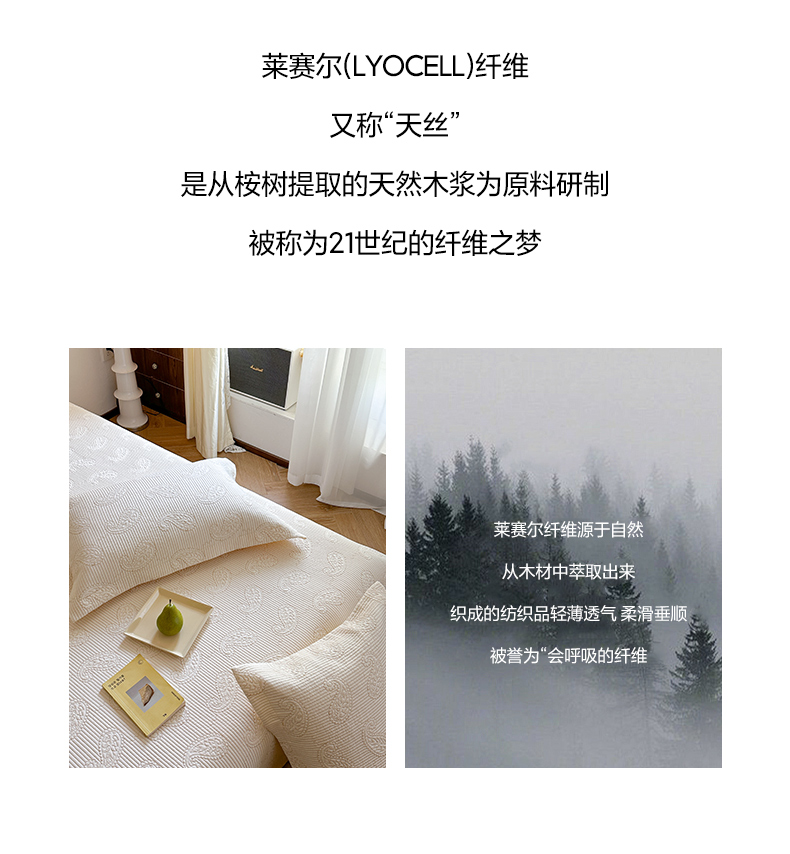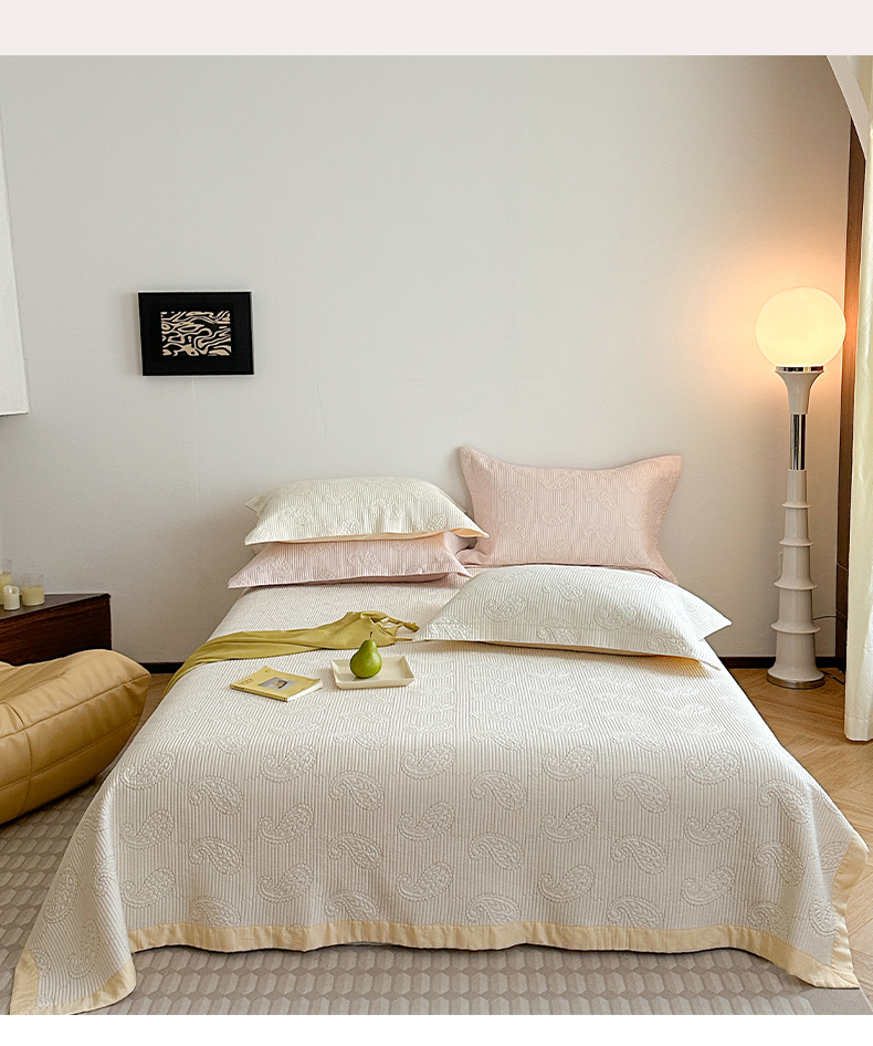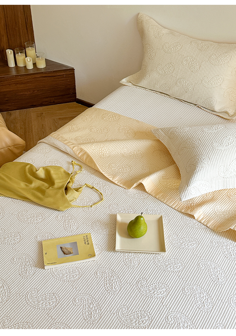 当前位置: 91家纺网 > 商品网购 > 床品套件 > 三件套 > 琳可家居 2025春夏新款腰果花系列双面莱赛尔天丝床盖三件套高温水洗可机洗 腰果花-优雅白