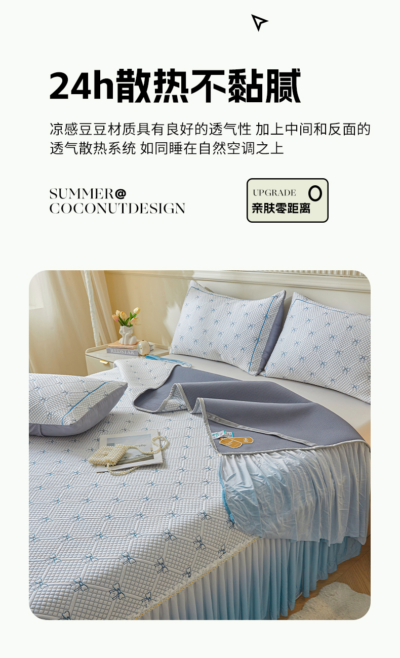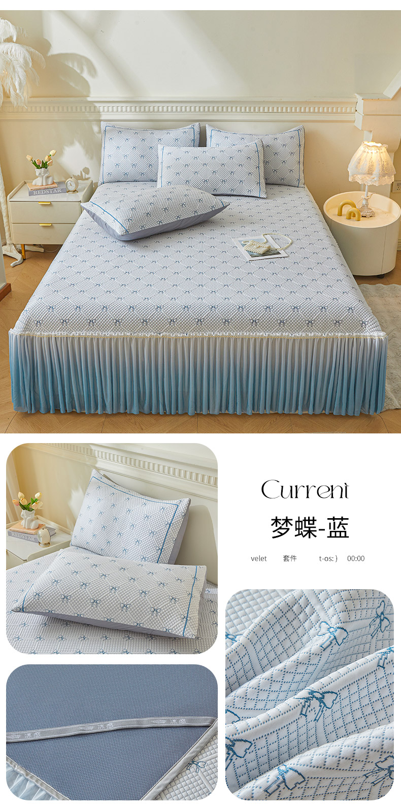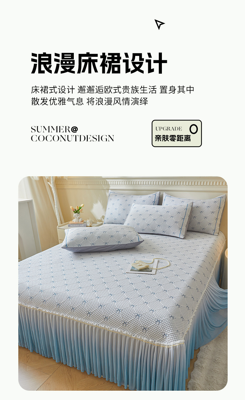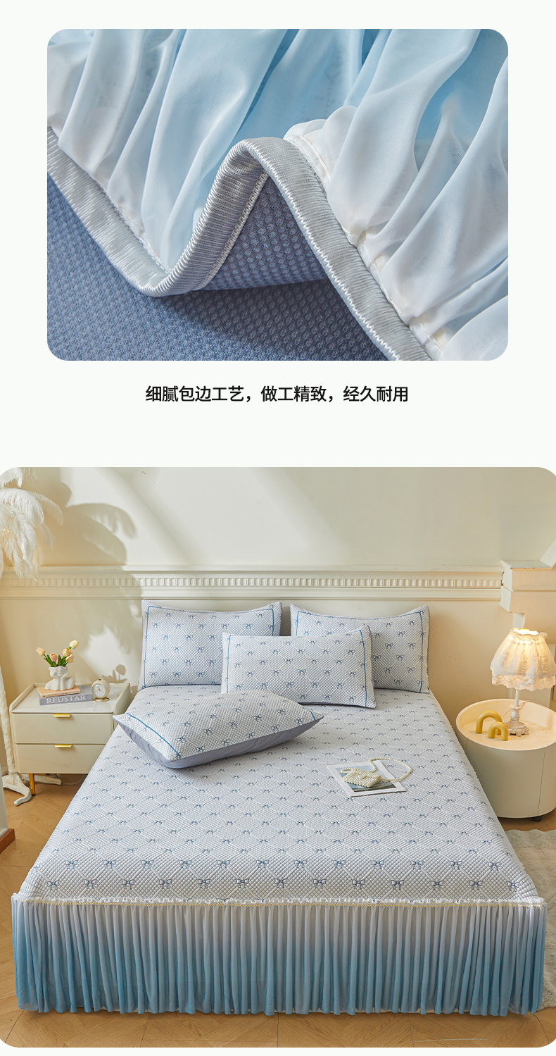 商品名称:罗艺轩 2025新款床裙款透气凉感豆豆软凉席席子 梦蝶-蓝