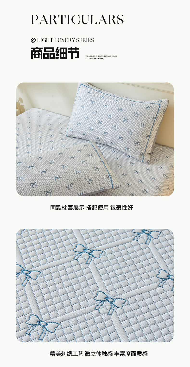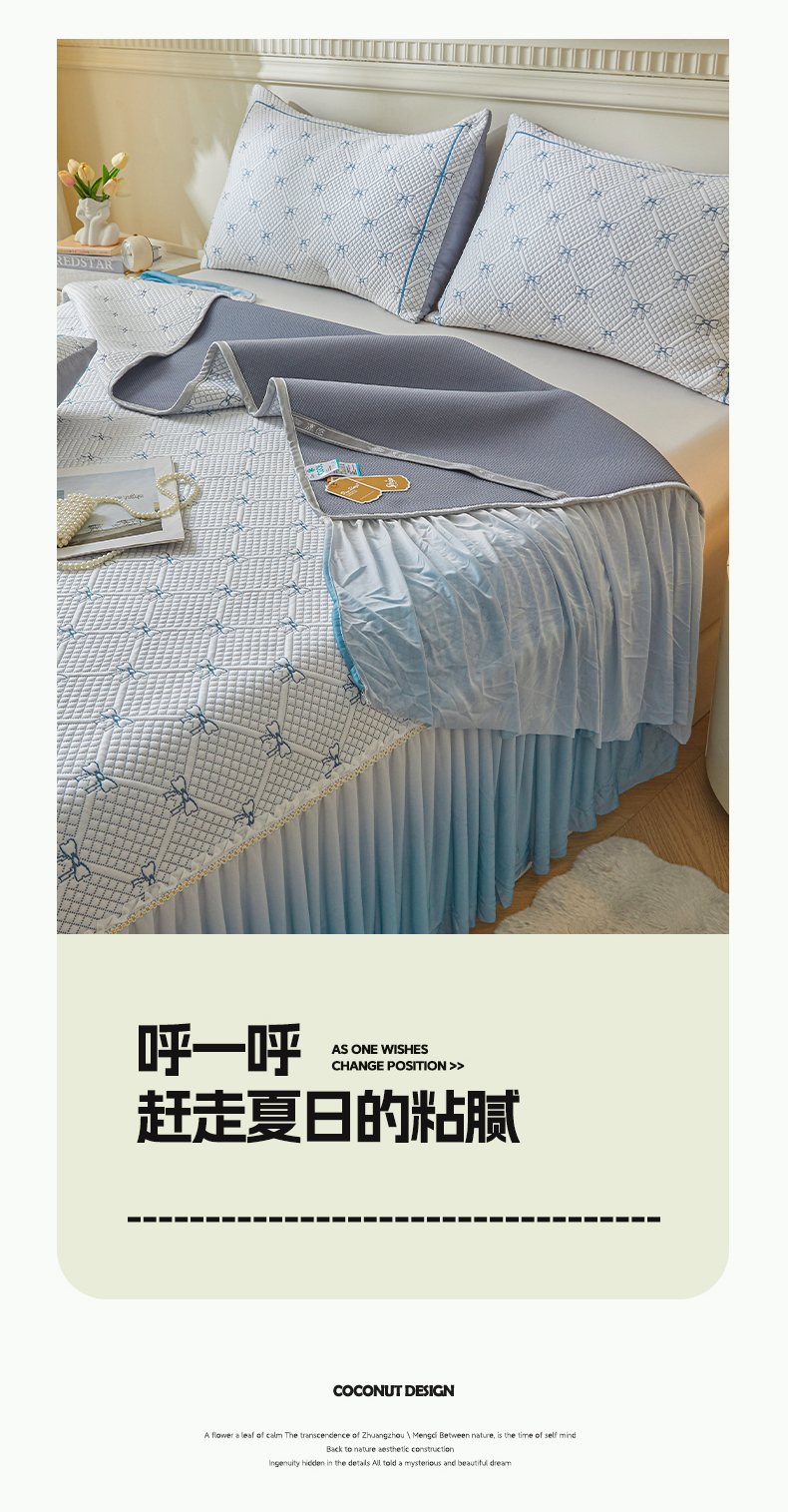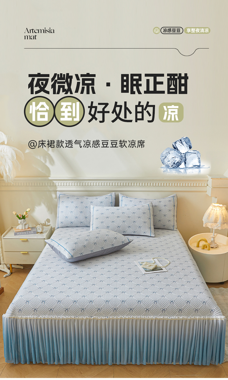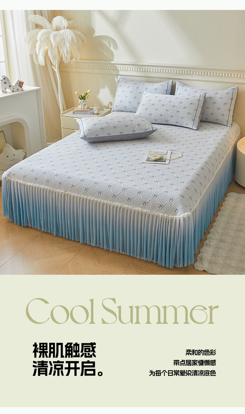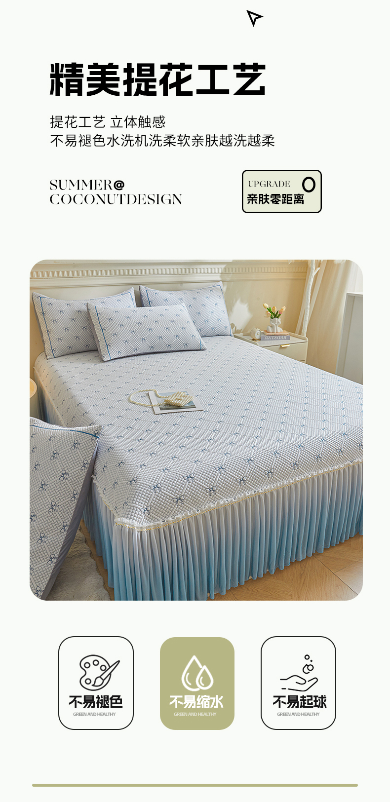 商品名称:罗艺轩 2025新款床裙款透气凉感豆豆软凉席席子 梦蝶-蓝