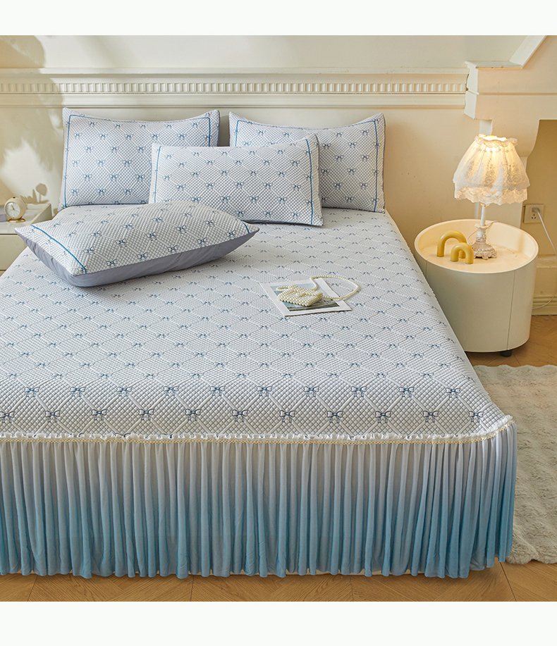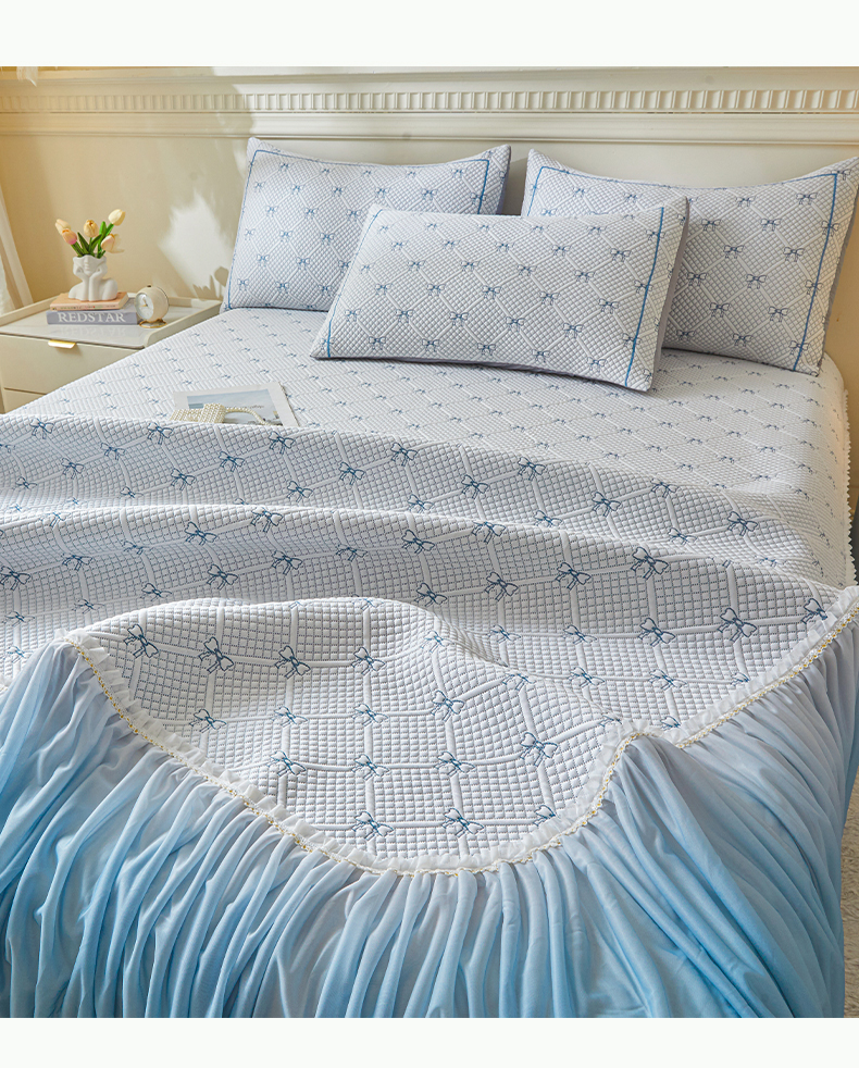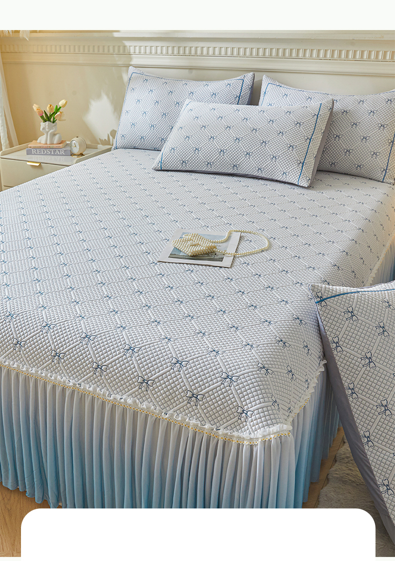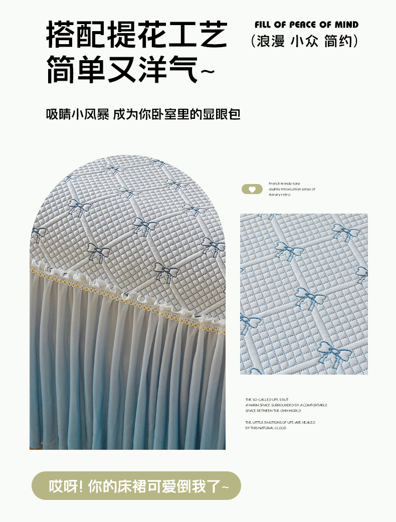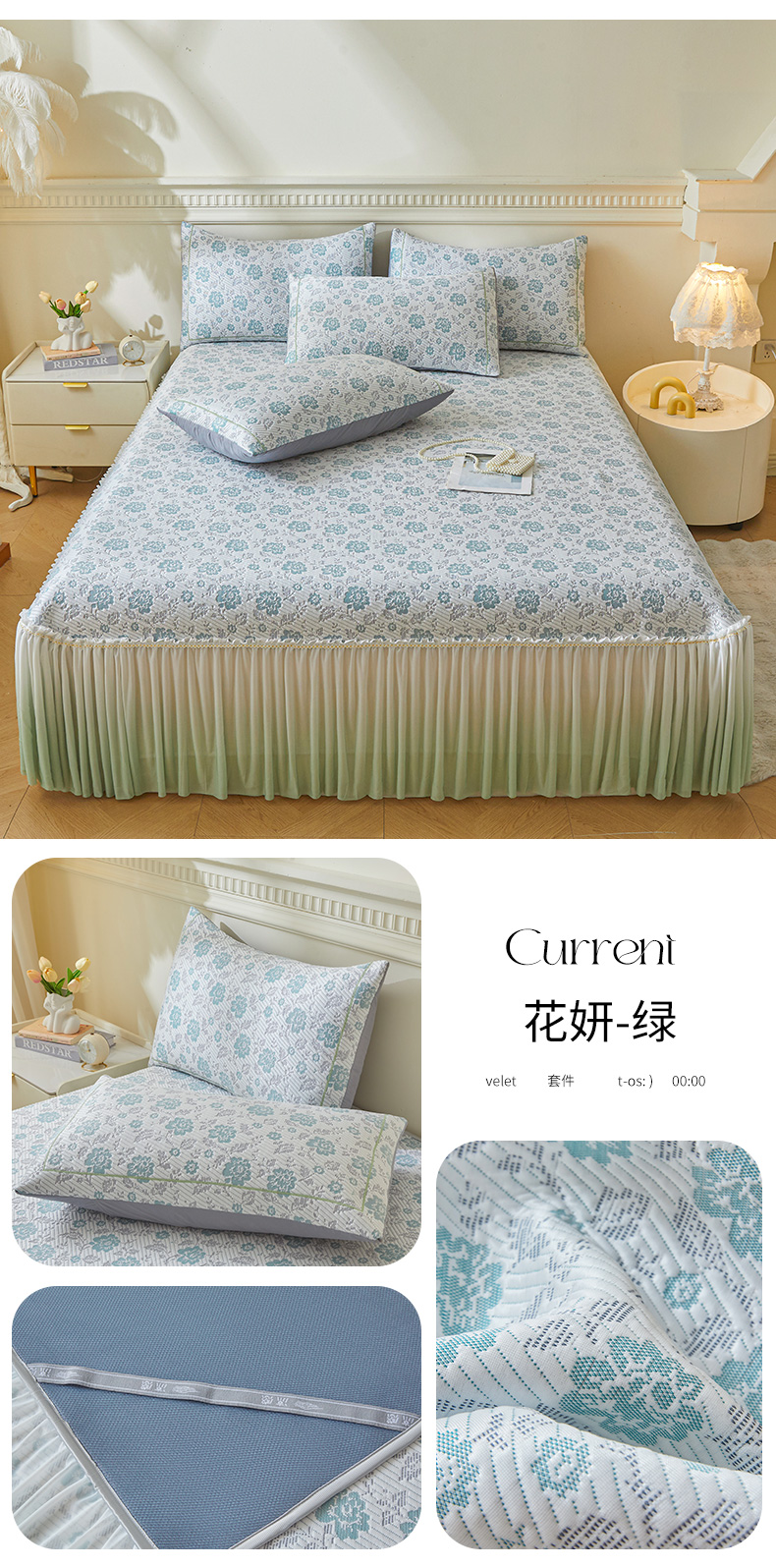 商品名称:罗艺轩 2025新款床裙款透气凉感豆豆软凉席席子 梦蝶-蓝