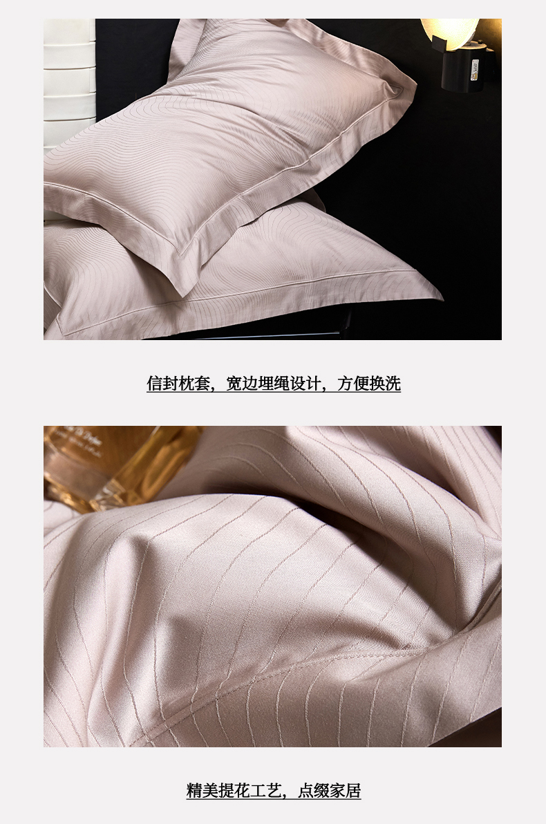 商品名称:洽想家 2025新款长绒棉贡缎提花手工立体埋绳工艺四件套礼盒包装 奢华魅力-天空灰