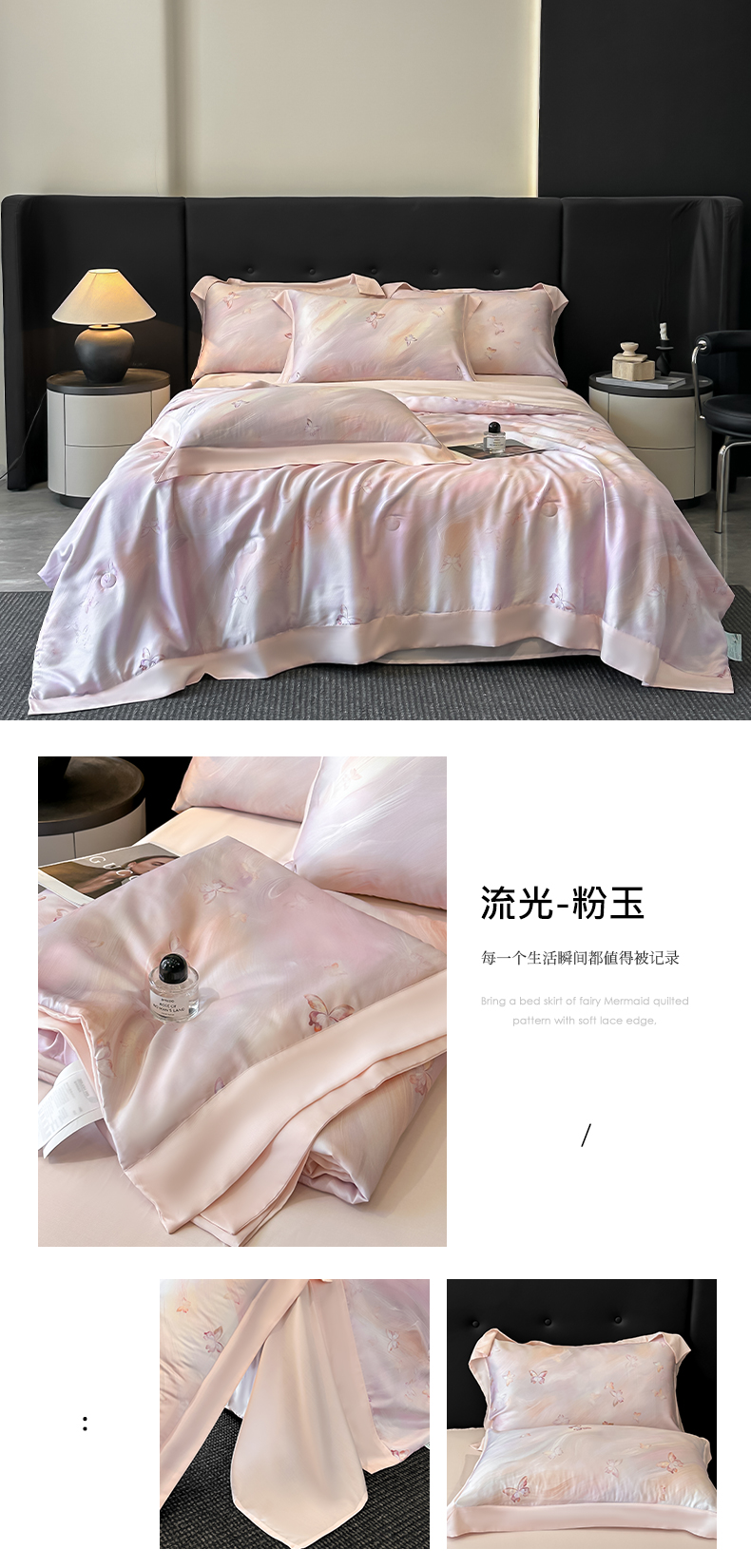 当前位置: 91家纺网 > 商品网购 > 床品套件 > 四件套 > 夏被四件套 > 博纳家纺 2025新款天丝夏被四件套-半夏 流光-粉玉