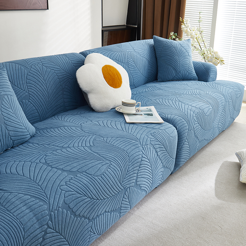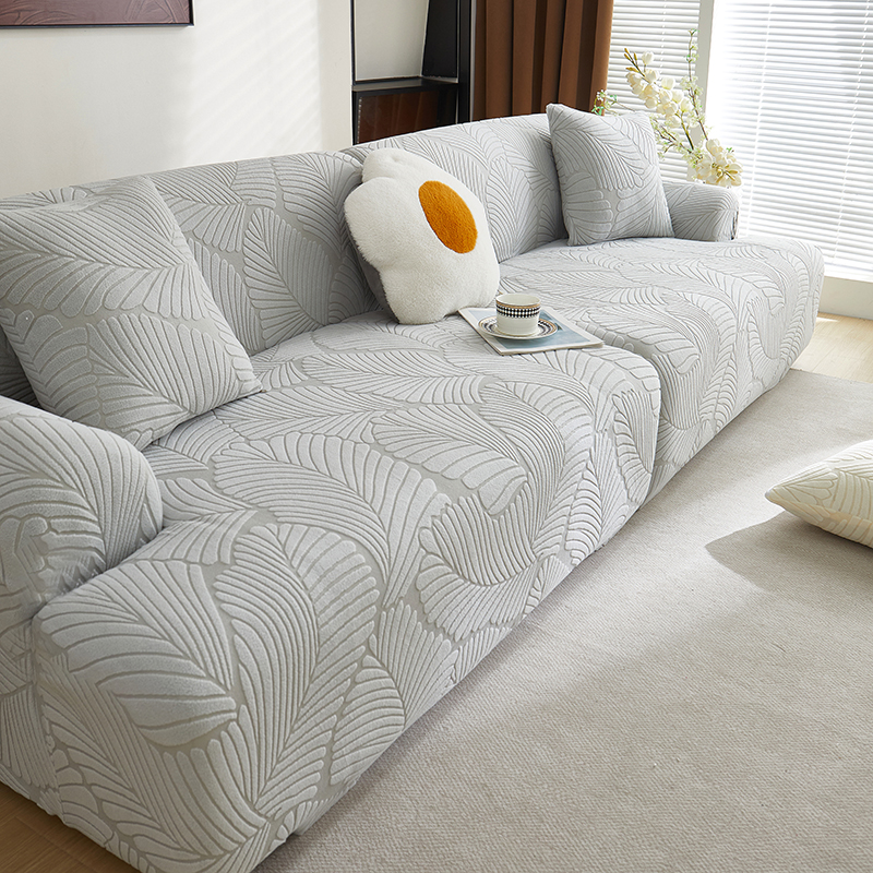 商品名称:丝绮鹿 2025新款雕花绒大叶子沙发套松紧款(直排) 深灰