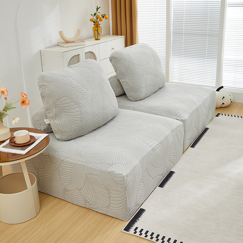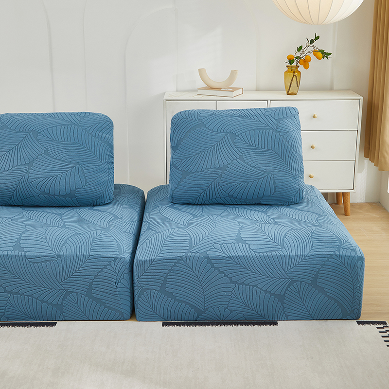 商品名称:丝绮鹿 2025新款雕花绒大叶子方块沙发套 水蓝