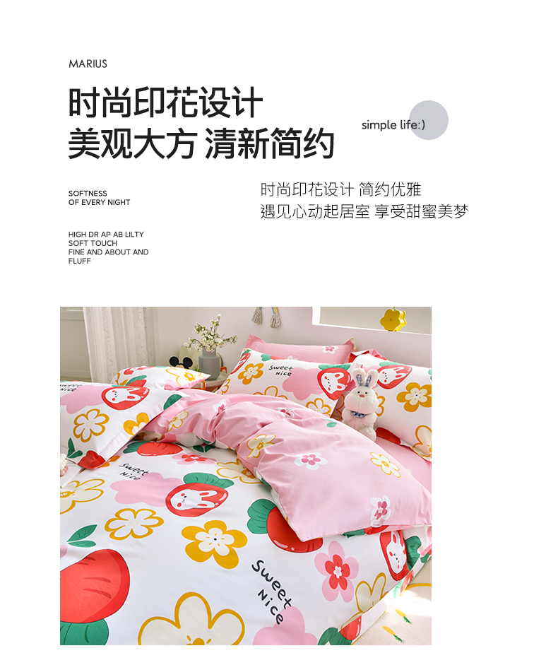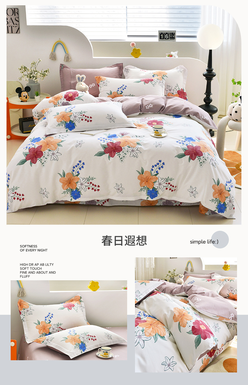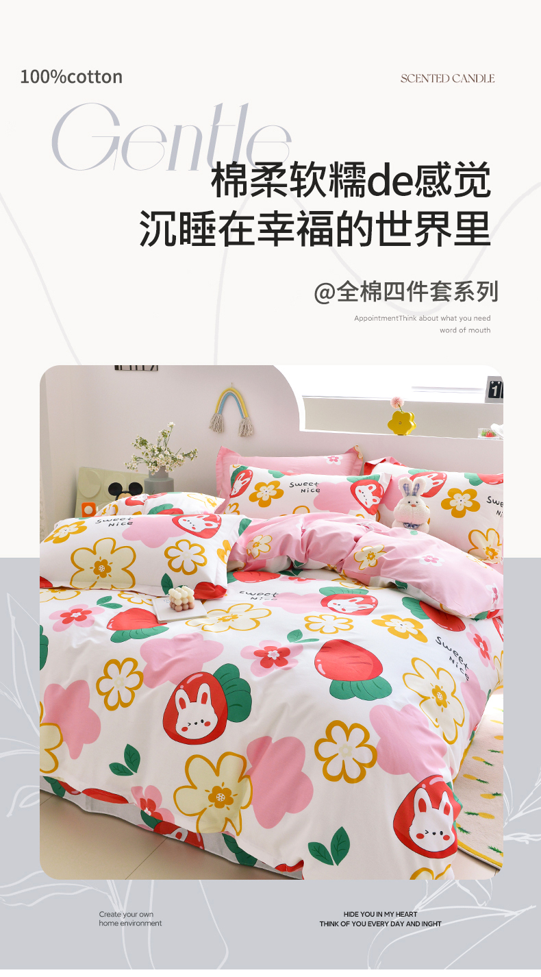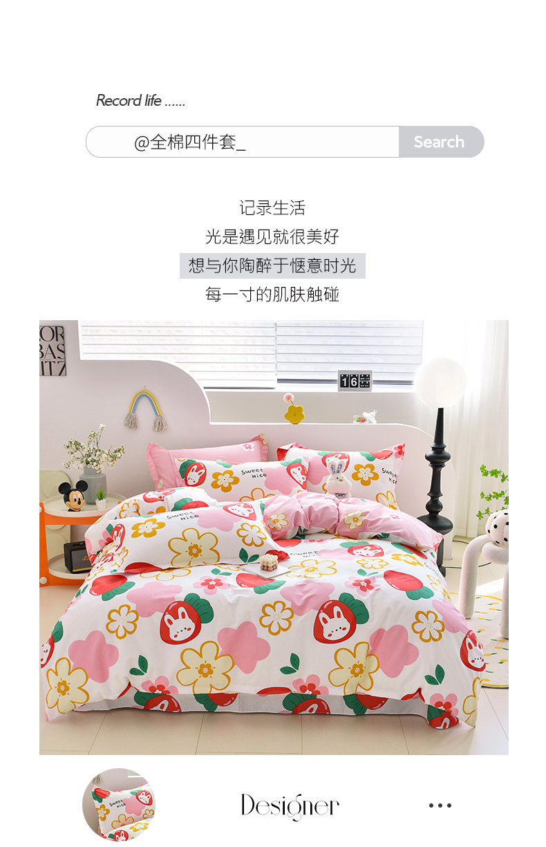 (总)登登 2024新款直播爆款清新风纯棉全棉三四件套,一见倾心,佳境,可爱小熊,奇趣时光,心动时分,意境花影,春日旅途,果味欧气,橙意满满,清新日记,空间悦动,花间曼舞,春日遐想,花儿朵朵,清风雅颂,甜甜小兔,夏日花语,至真园,春风十里,多姿彩羽,浪漫花语,紫气盛开