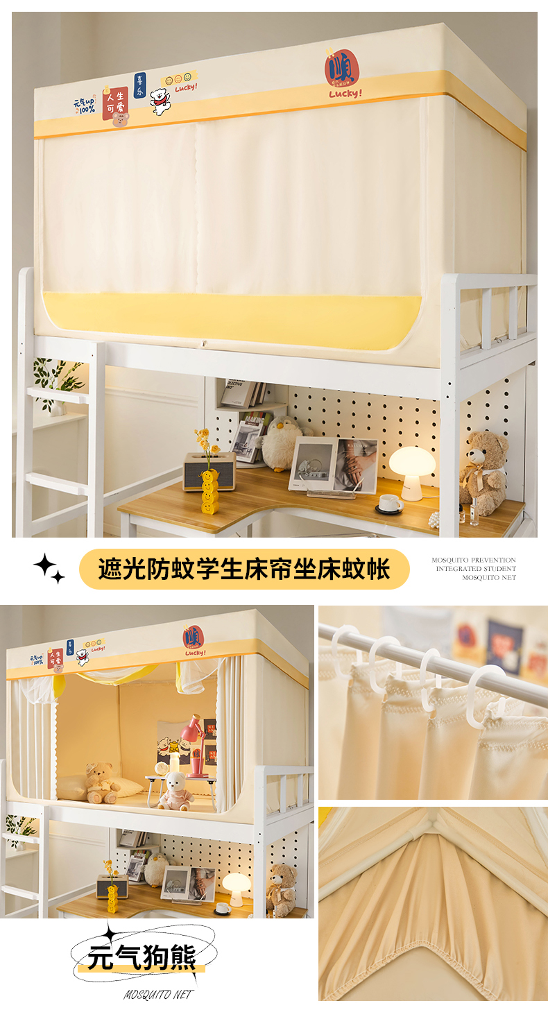 (总)锦逸家居 2025新款卡通抱抱熊强遮光床帘款学生蚊帐,可爱熊-卡其,好朋友-天蓝,蝴蝶结-嫩黄,幸运熊和狗-粉