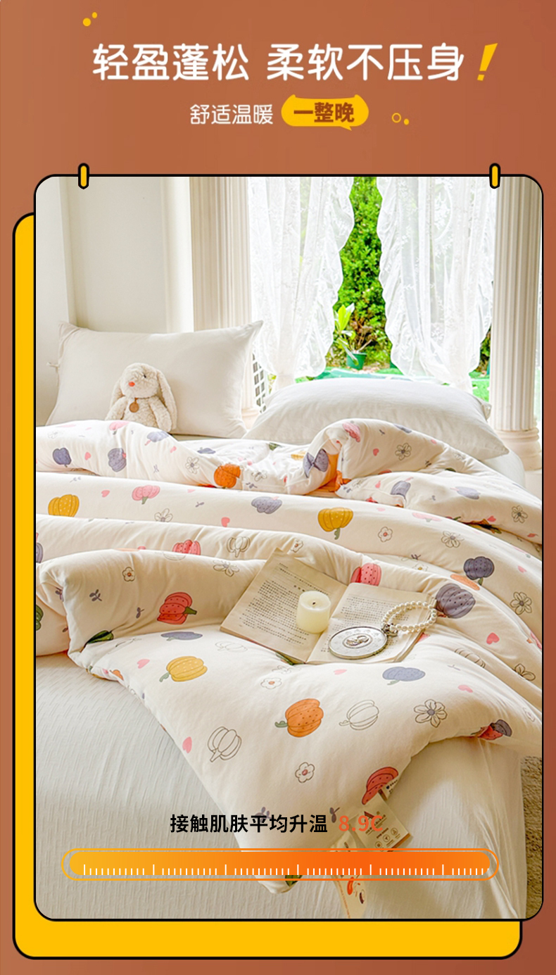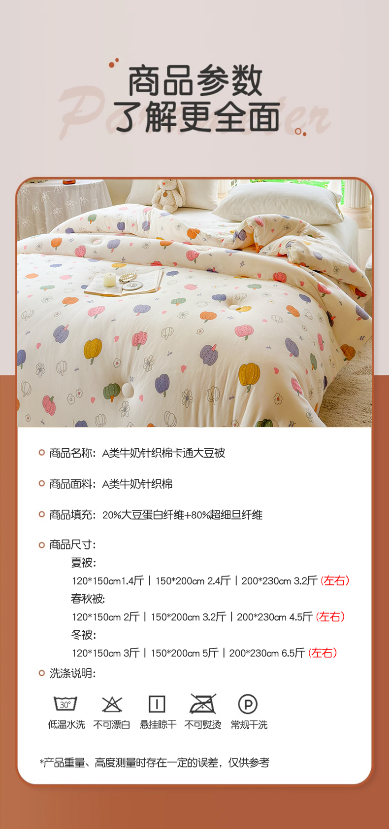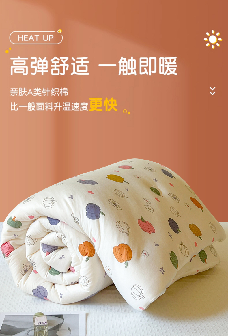 • 91家纺网 家纺一手货源 找家纺  提供买家秀爆款花型不断货A类母婴级宝宝被针织棉夏被空调被春秋被冬被大豆被被子被芯 七彩南瓜【A类针织棉面料母婴可用】