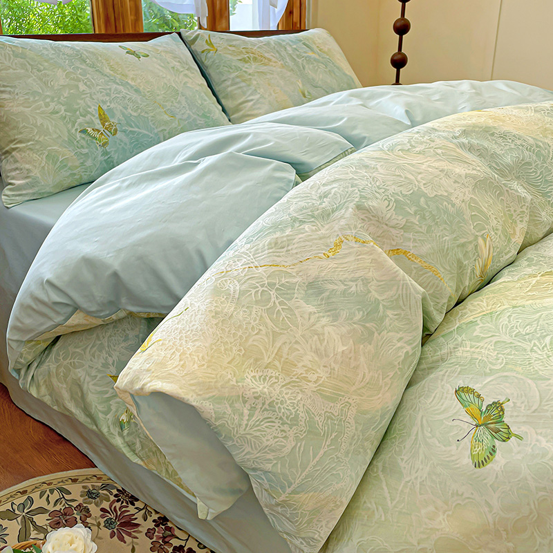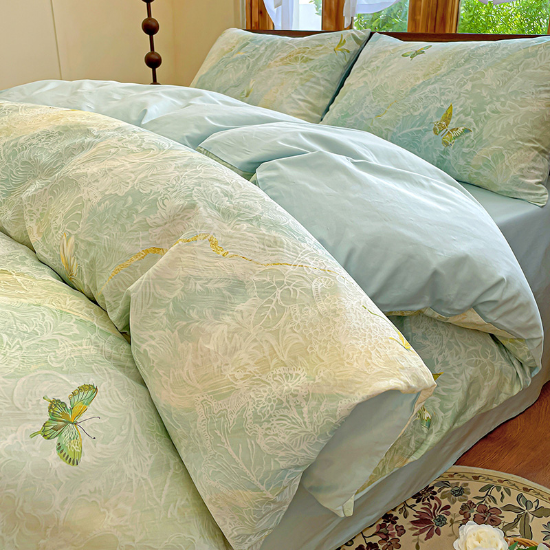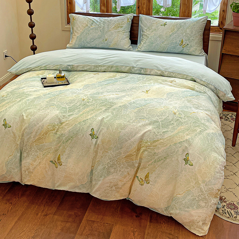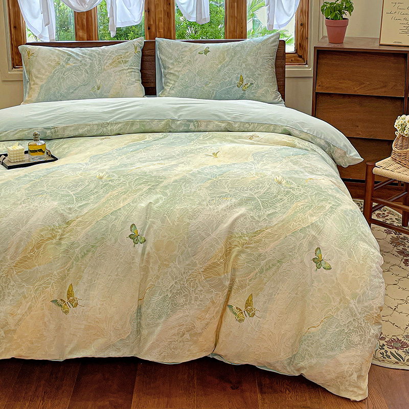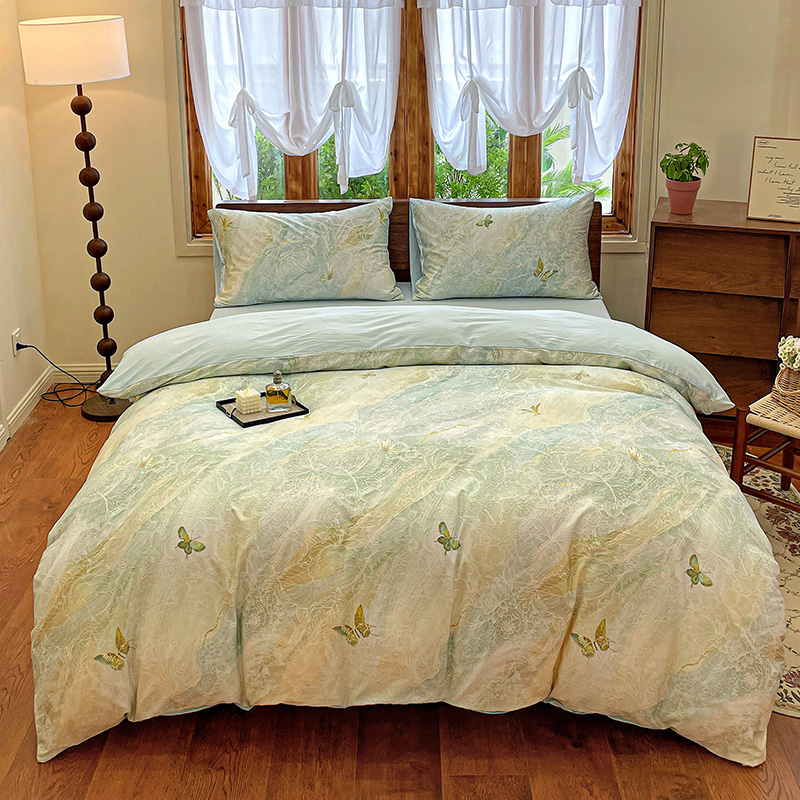 耀悦家纺 2025年60支纯棉印花四件套长绒棉被套床单 蝶恋