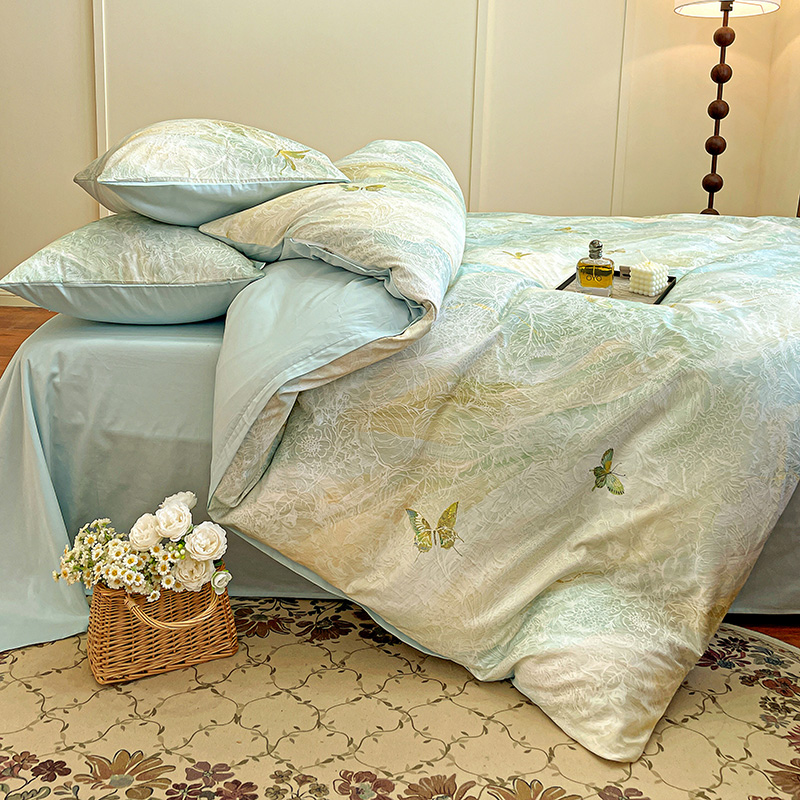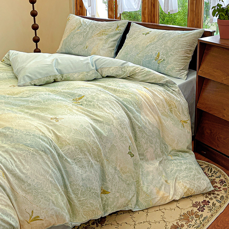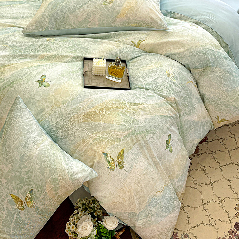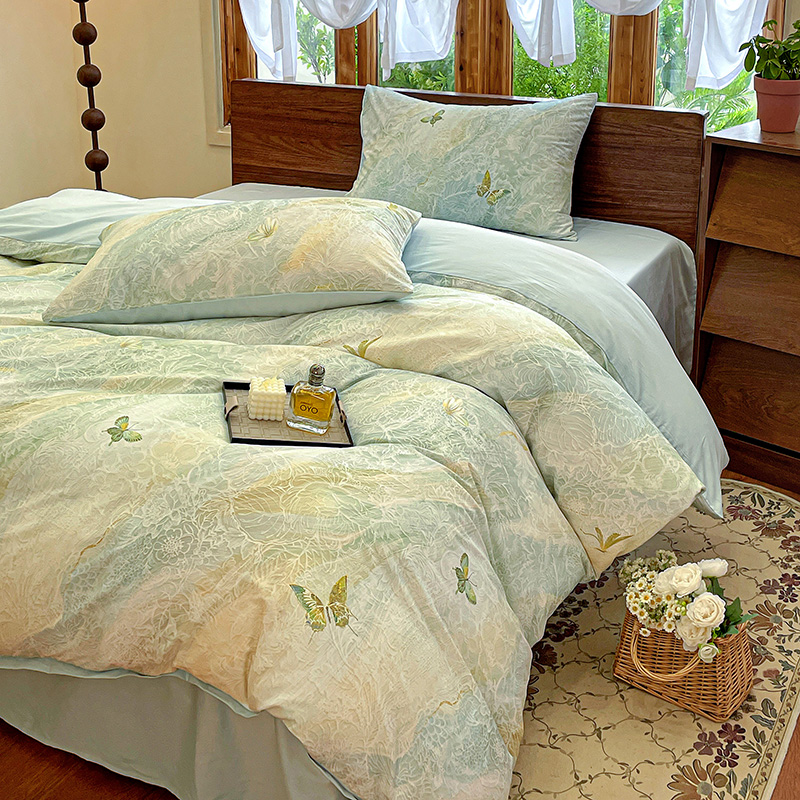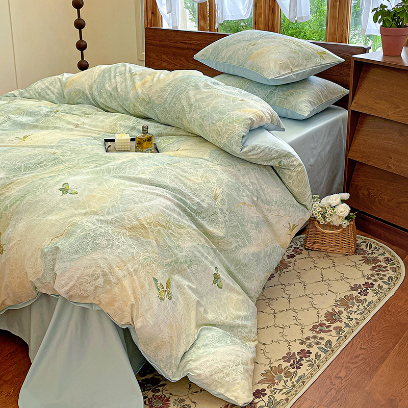 耀悦家纺 2025年60支纯棉印花四件套长绒棉被套床单 蝶恋