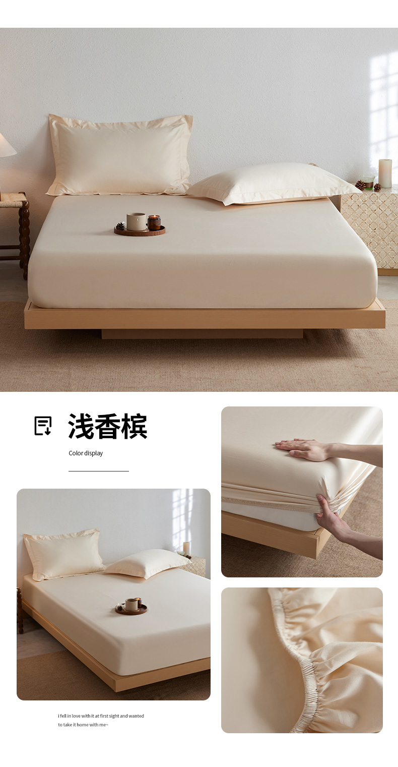 • 91家纺网 家纺一手货源 找家纺 轩和家居 2025新款50S贡缎长绒棉纯棉单床笠单品床笠床笠单件 浅香槟