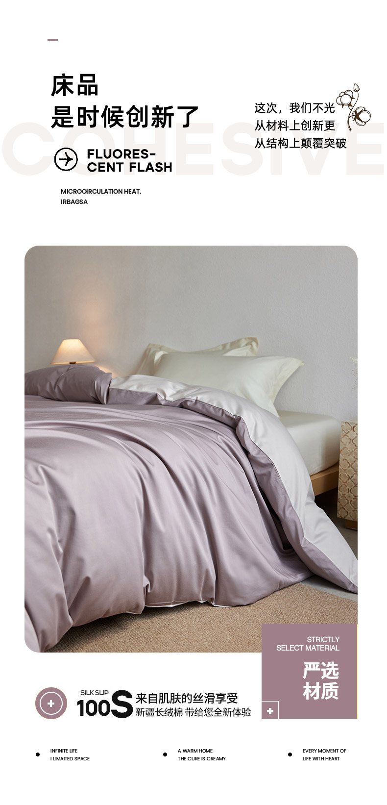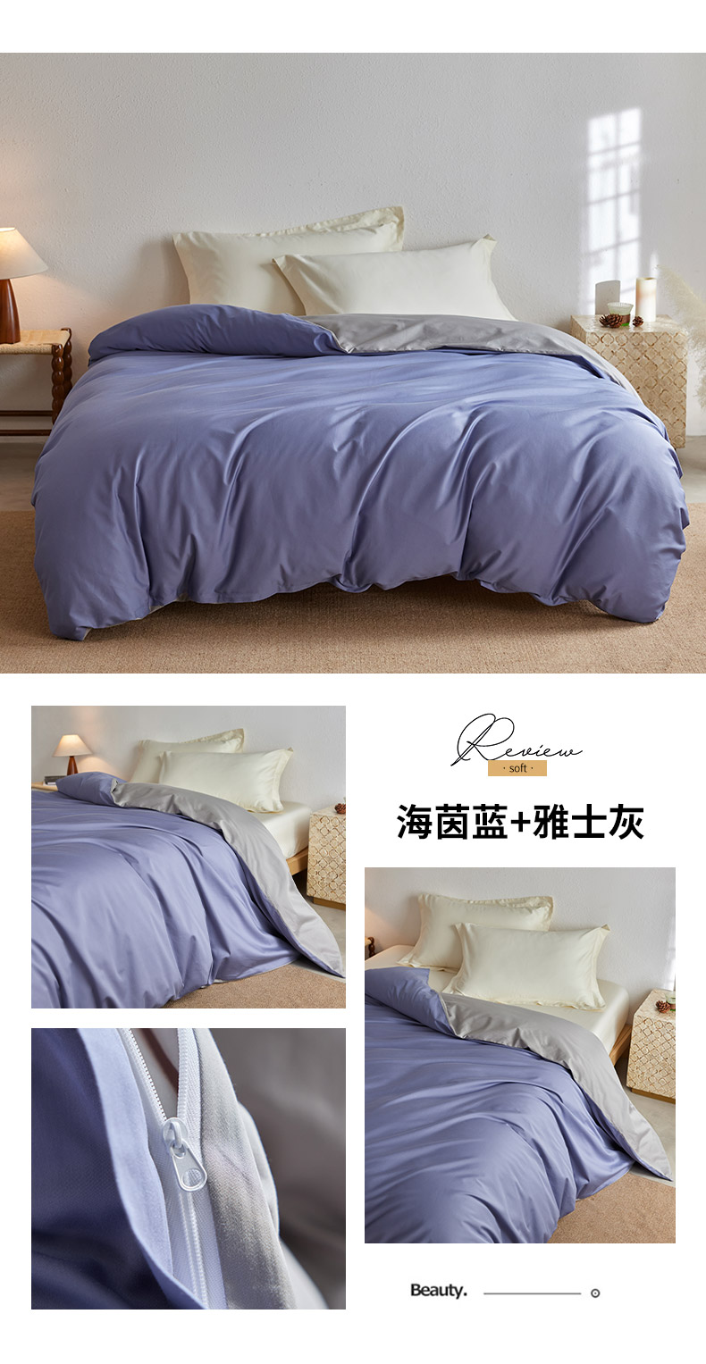 • 91家纺网 家纺一手货源 找家纺 轩和家居 2025新款50S贡缎长绒棉纯棉单被套单品被套被套单件 丹麦紫+迷雾灰