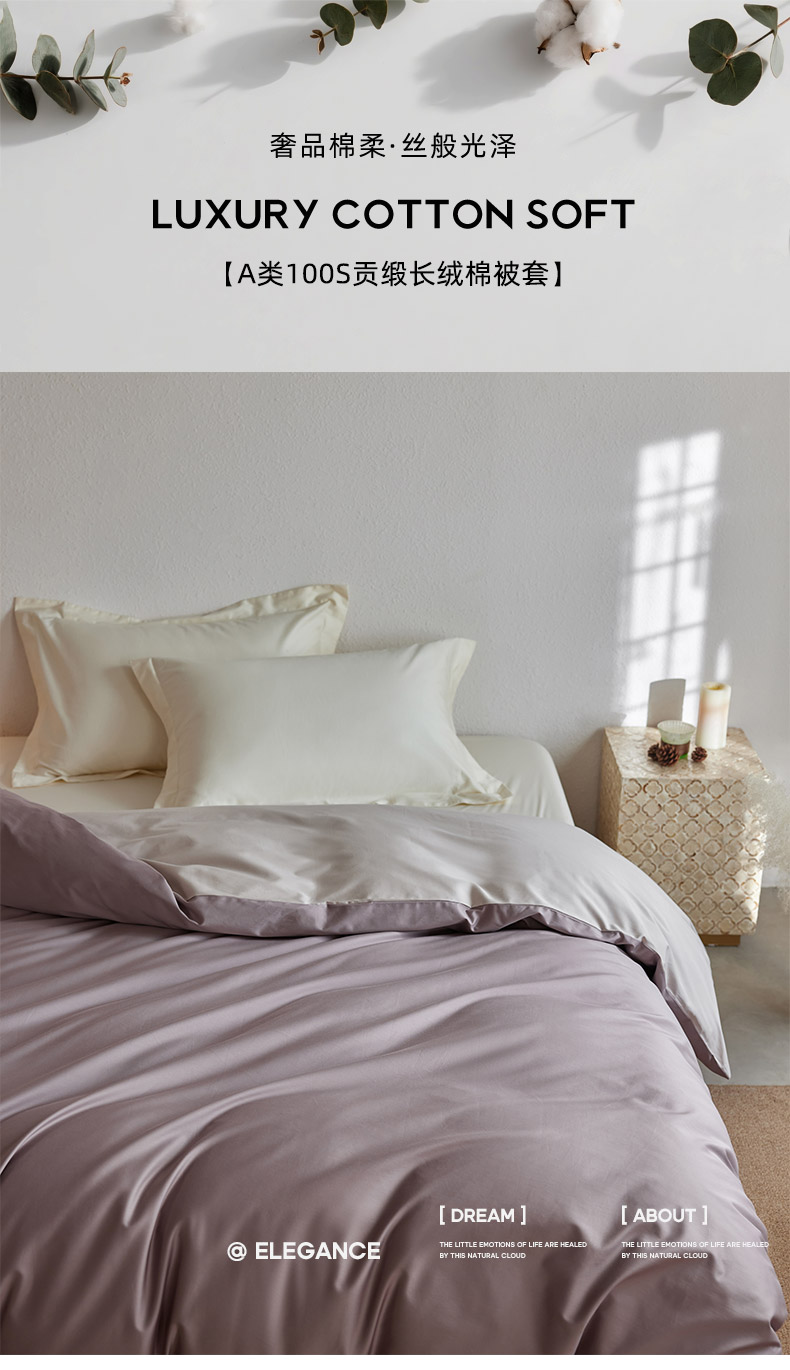 当前位置: 91家纺网 > 商品网购 > 床上用品 > 被套 > 轩和家居 2025新款50S贡缎长绒棉纯棉单被套单品被套被套单件 丹麦紫+迷雾灰