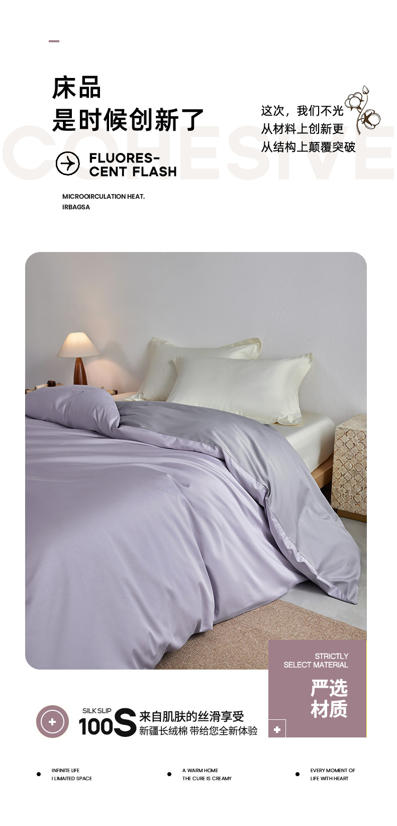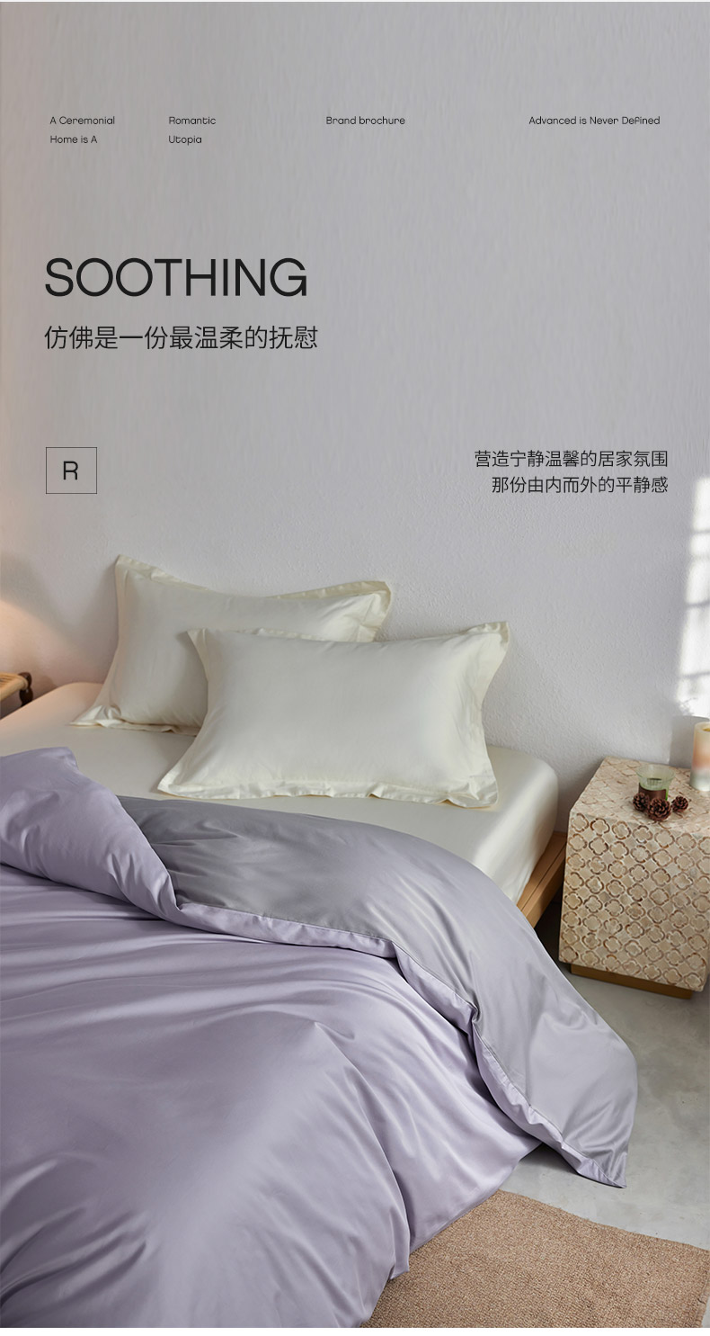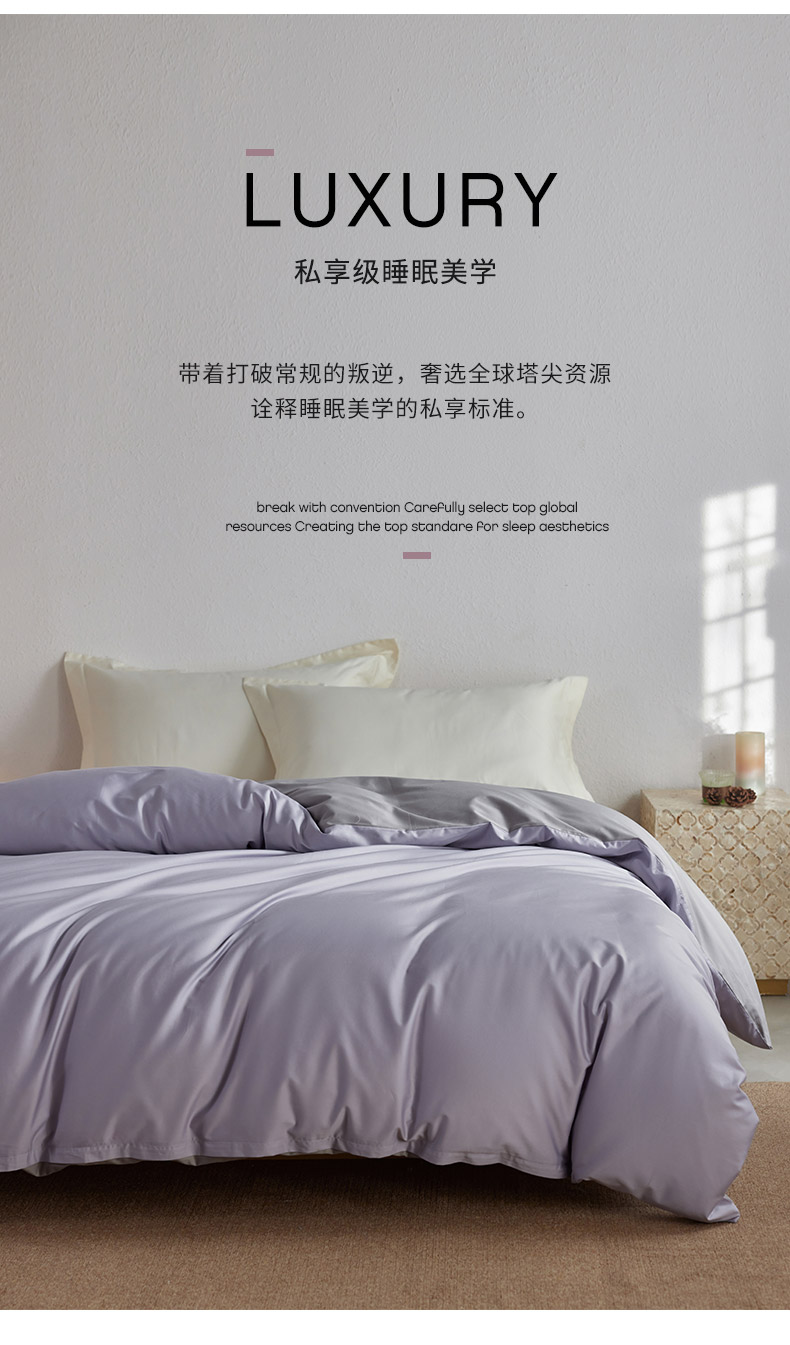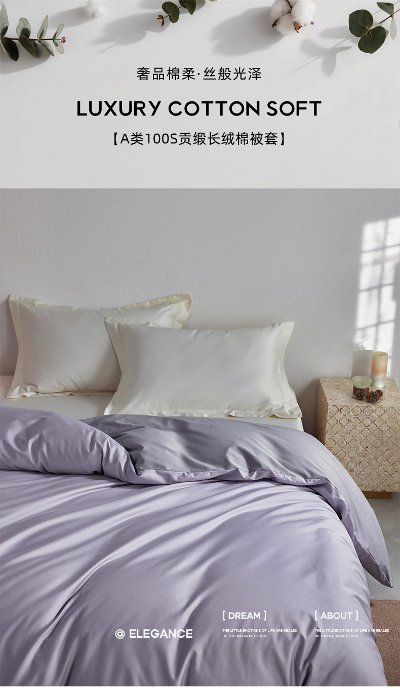 • 91家纺网 家纺一手货源 找家纺 轩和家居 2025新款50S贡缎长绒棉纯棉单被套单品被套被套单件 仙仙紫+雅士灰